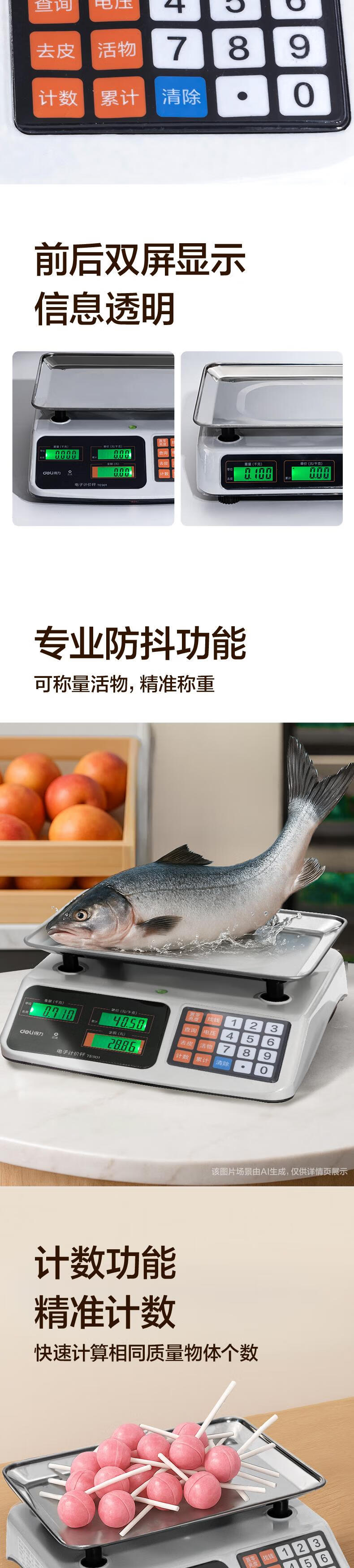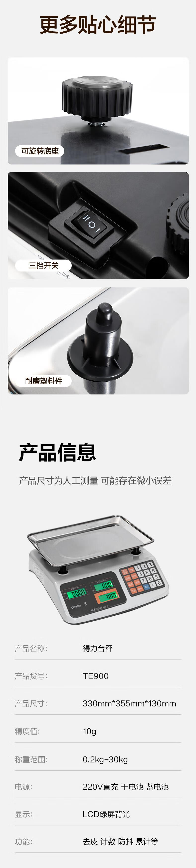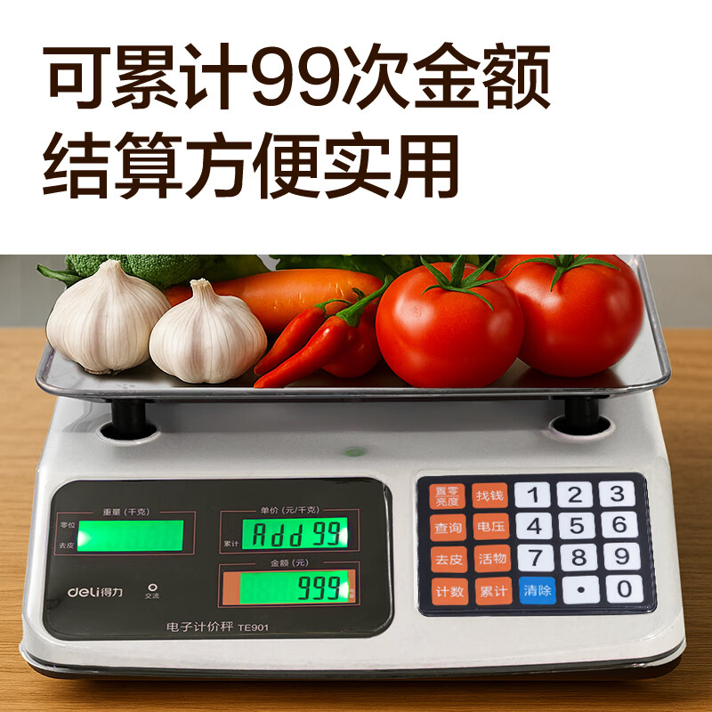 得力(deli)称重电子秤商用台秤计价秤计数电子称菜场超市高精度卖菜专用秤 1台 TE900