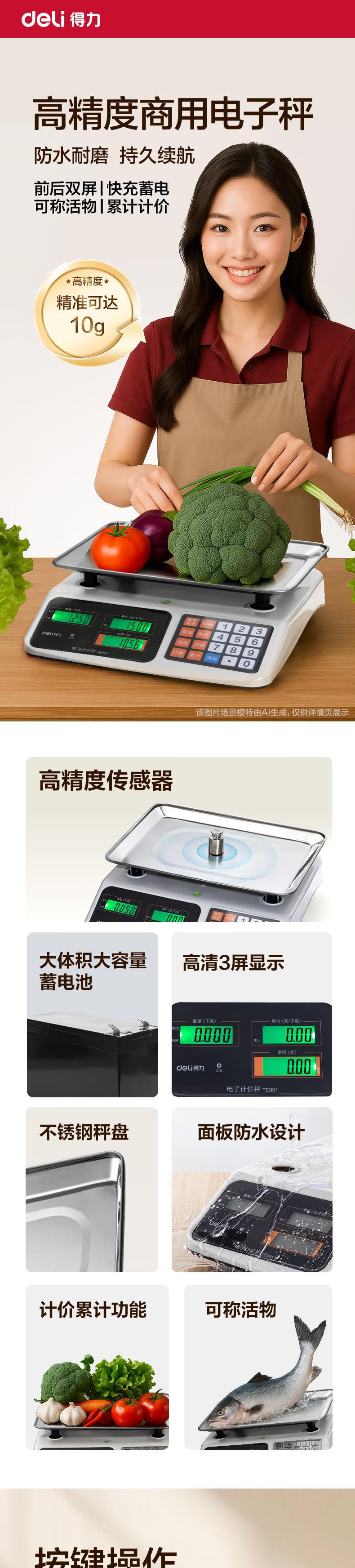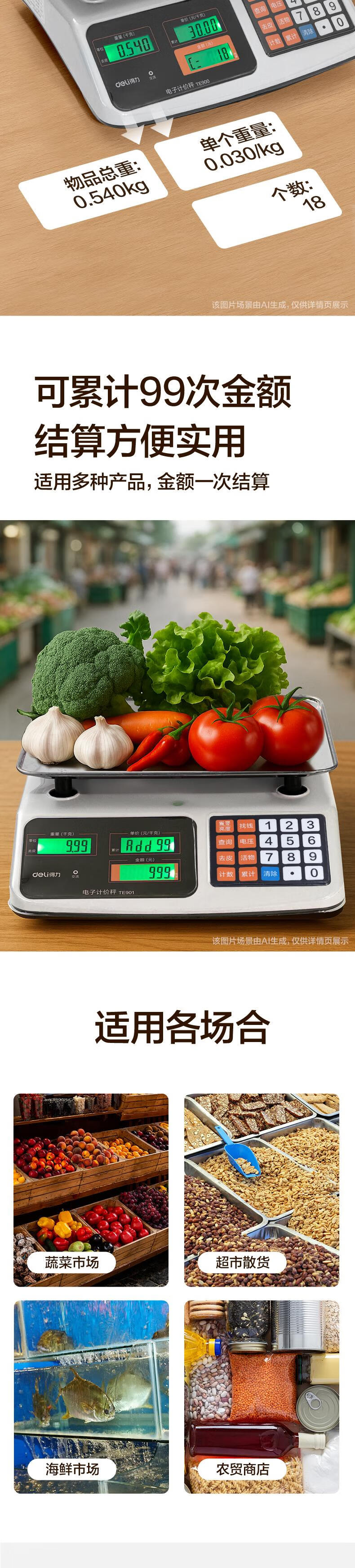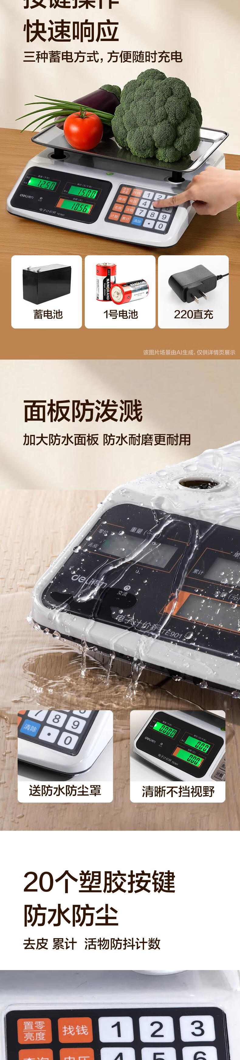 得力(deli)称重电子秤商用台秤计价秤计数电子称菜场超市高精度卖菜专用秤 1台 TE900