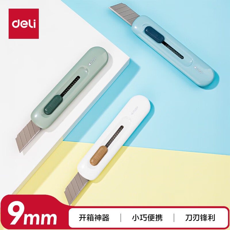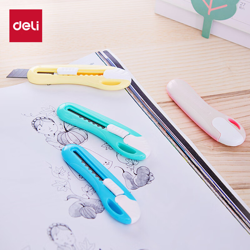 得力(deli)纽赛美工刀/壁纸刀拆快递神器开箱刀片小刀小号 办公用品工具刀可磁吸安全创意 NS066黄色