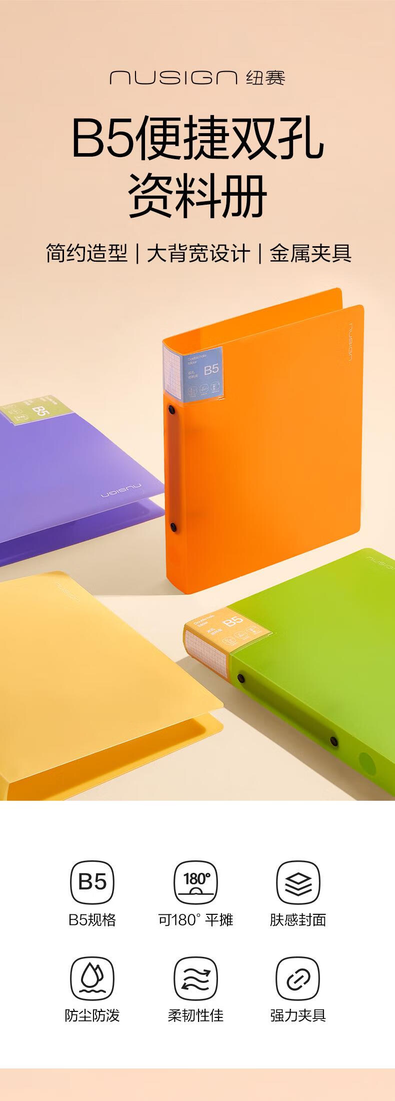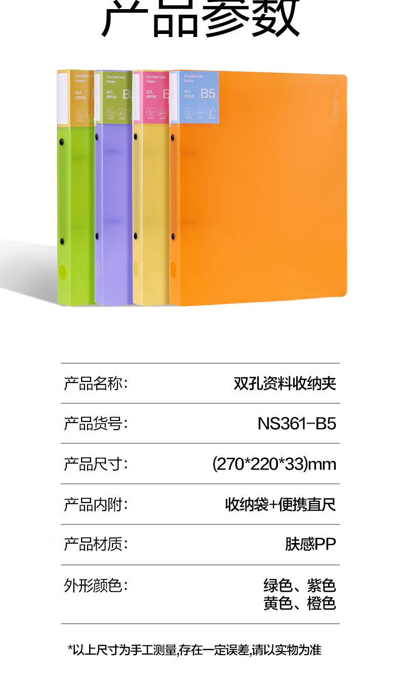 得力(deli)纽赛B5双孔资料收纳夹 文件夹板活页收纳册试卷收纳夹孔夹 办公学习用品NS361颜色随机
