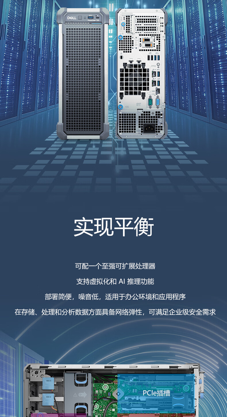 戴尔(DELL)PowerEdge T160小型塔式服务器工作站台式电脑主机 ERP存储服务器