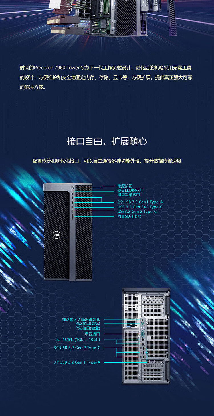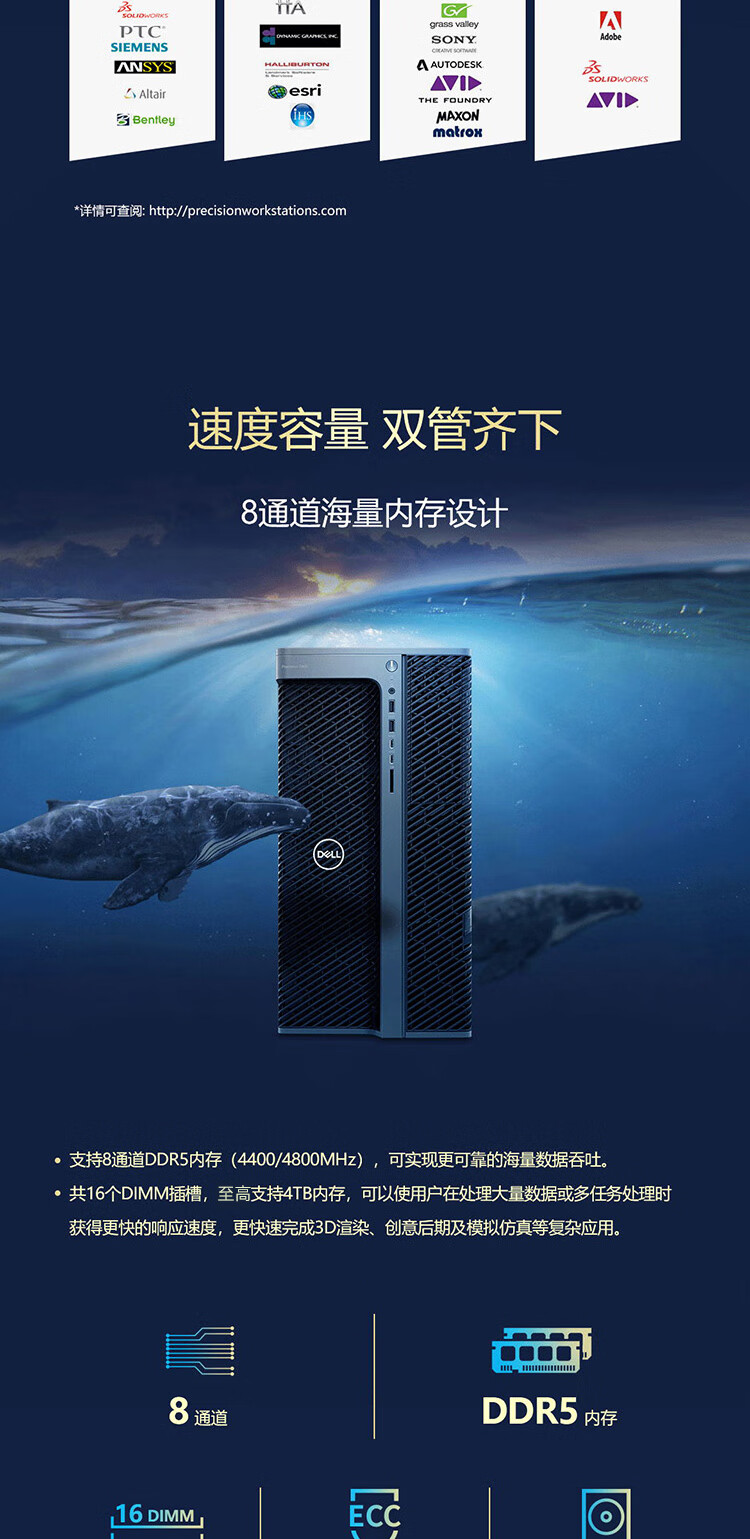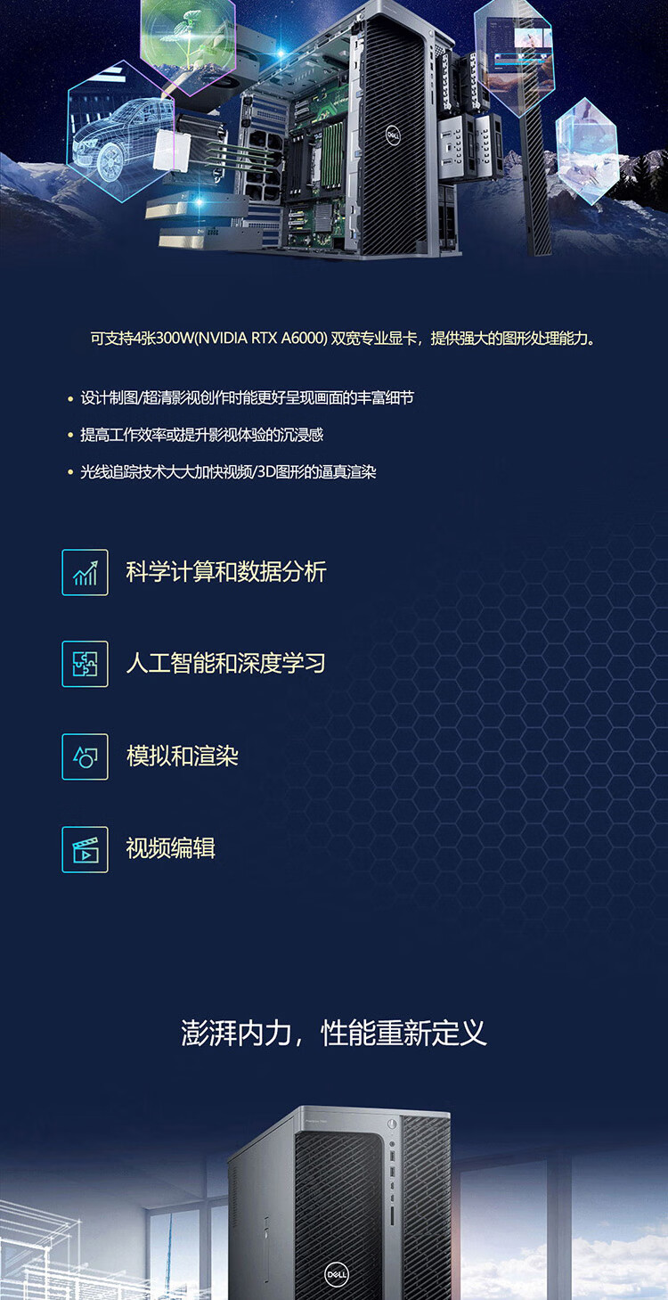 戴尔(DELL)Precision T7960高性能图形工作站GPU服务器DeepSeek本地部署仿真AI工作站主机定制