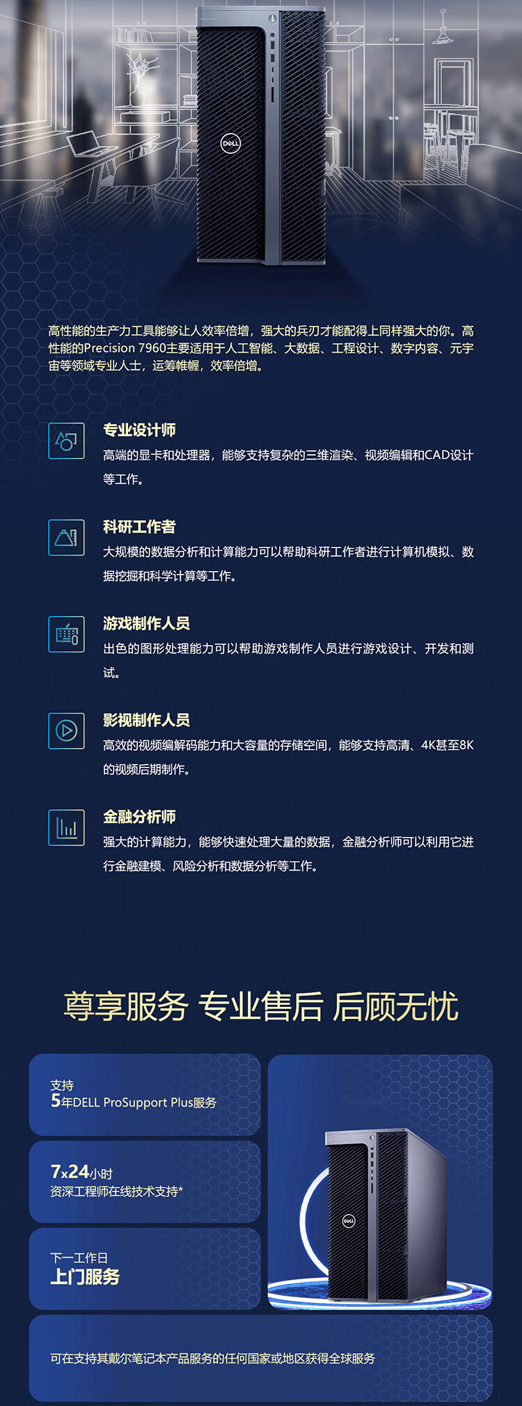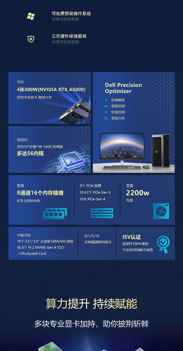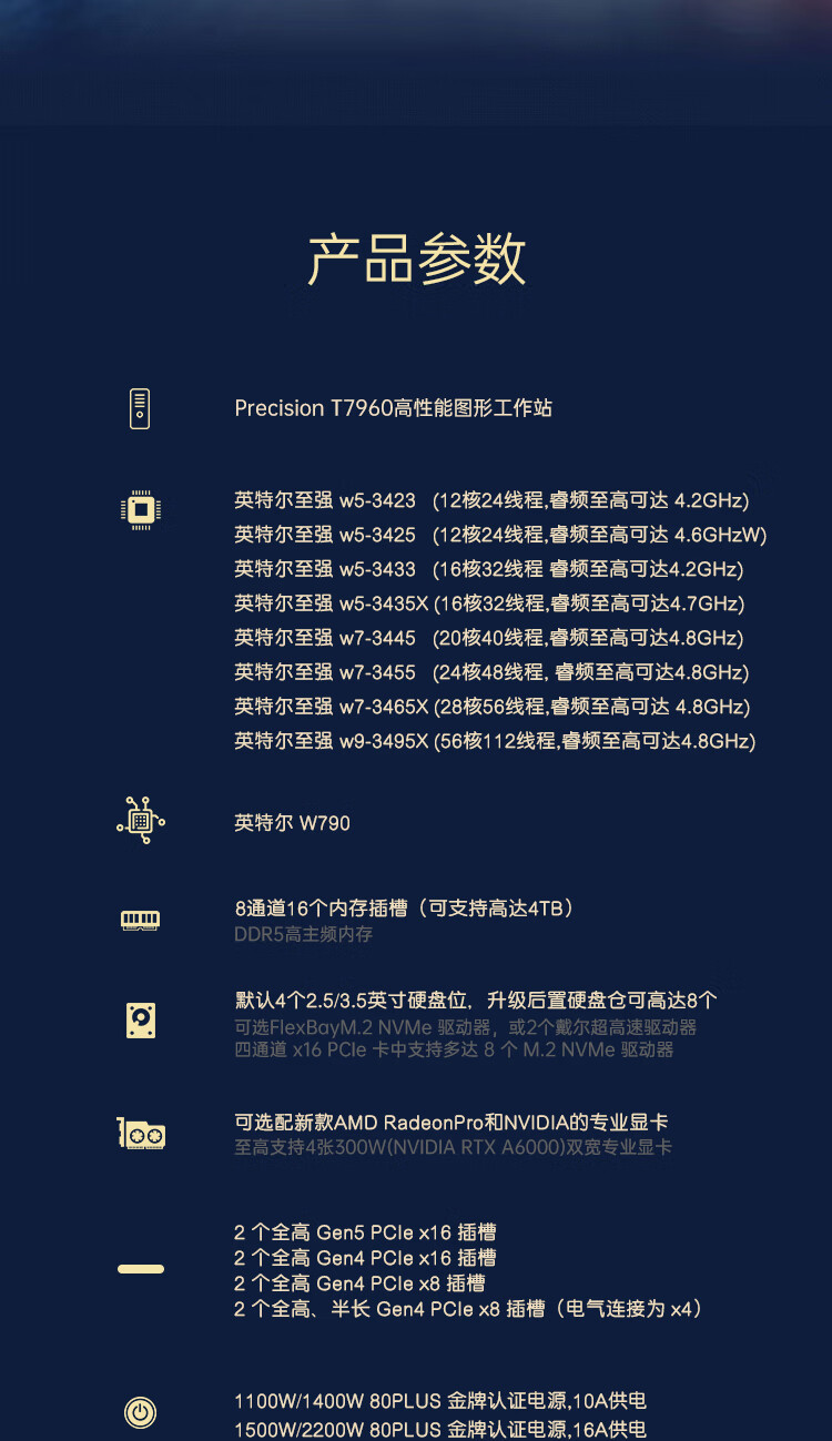 戴尔(DELL)Precision T7960高性能图形工作站GPU服务器DeepSeek本地部署仿真AI工作站主机定制