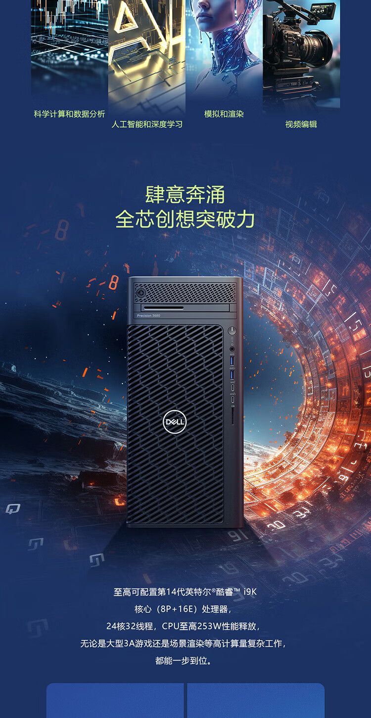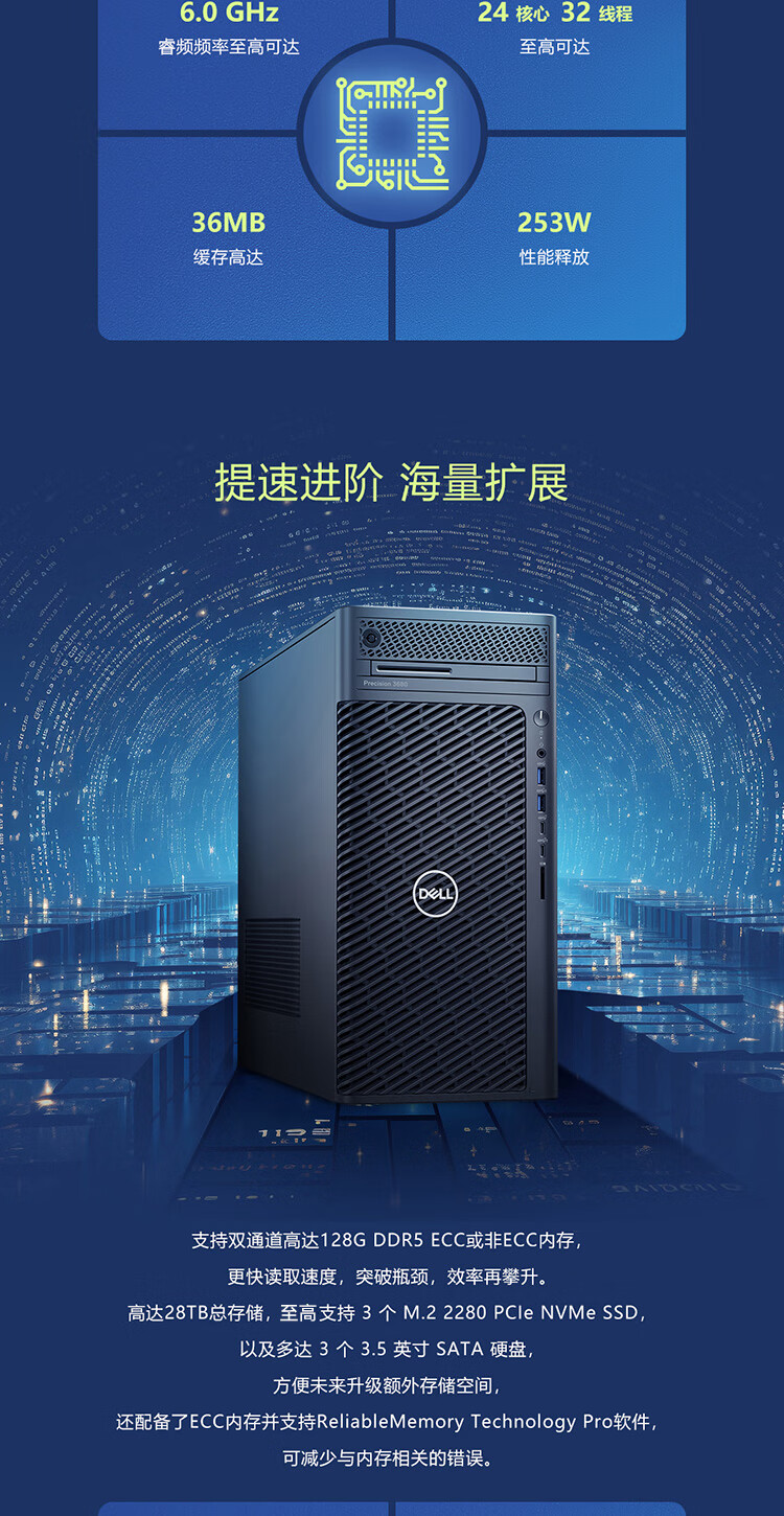戴尔(DELL)Precision T3680升级全新T2 Ultra高性能图形设计师渲染建模工作站《黑神话》台式机主机