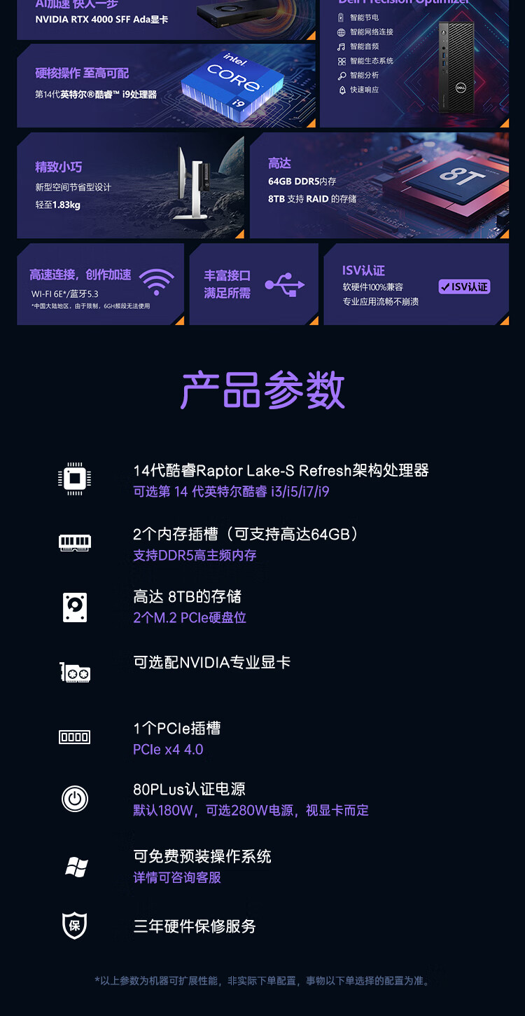 戴尔(DELL) Precision T3280塔式小型迷你图形工作站定制mini台式电脑