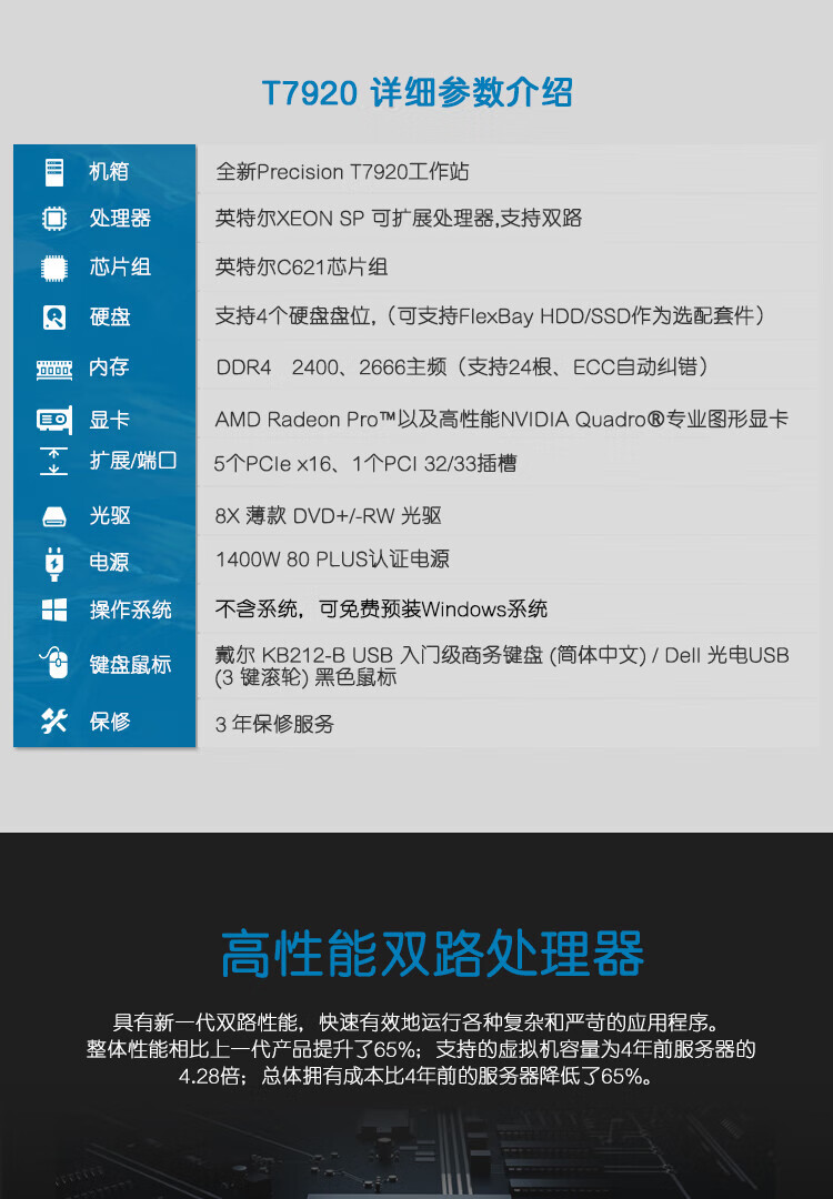 戴尔(DELL) Precision T7920 图形工作站台式机 塔式DeepSeek本地部署电脑主机 GPU深度学习服务器