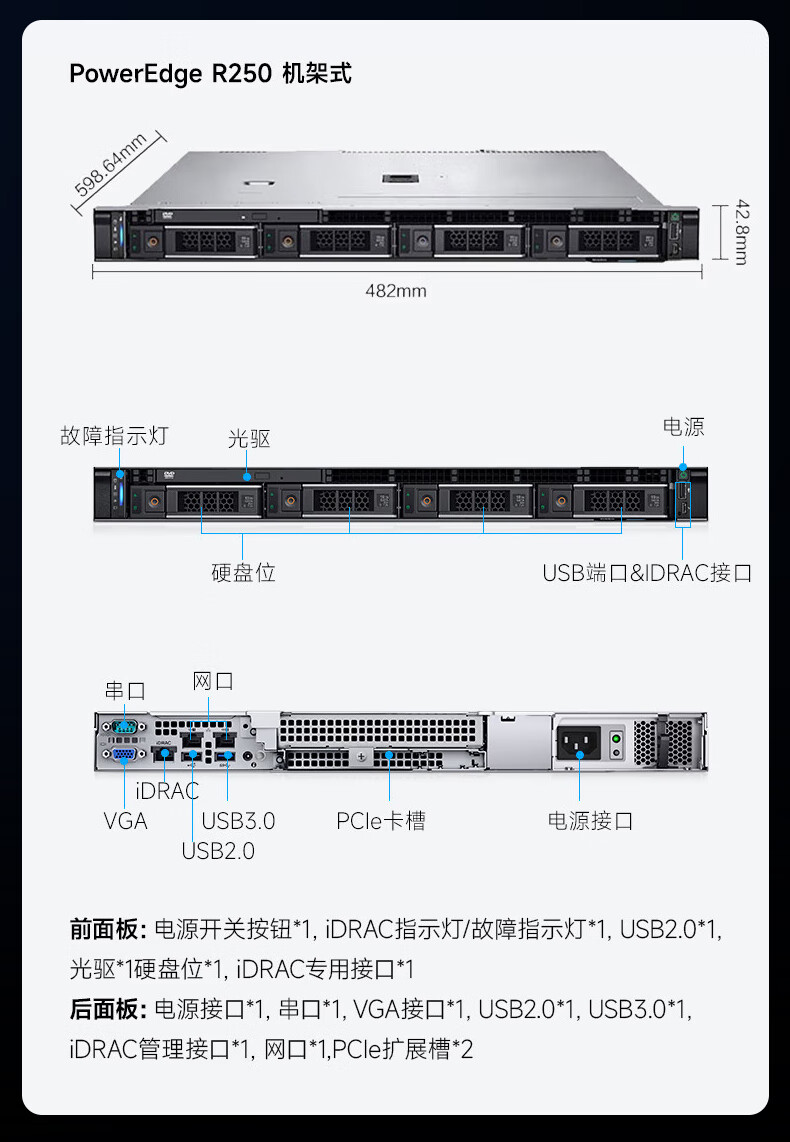 戴尔(DELL)PowerEdge R250/R360 1U机架式服务器金蝶ERP文件共享云主机服务器