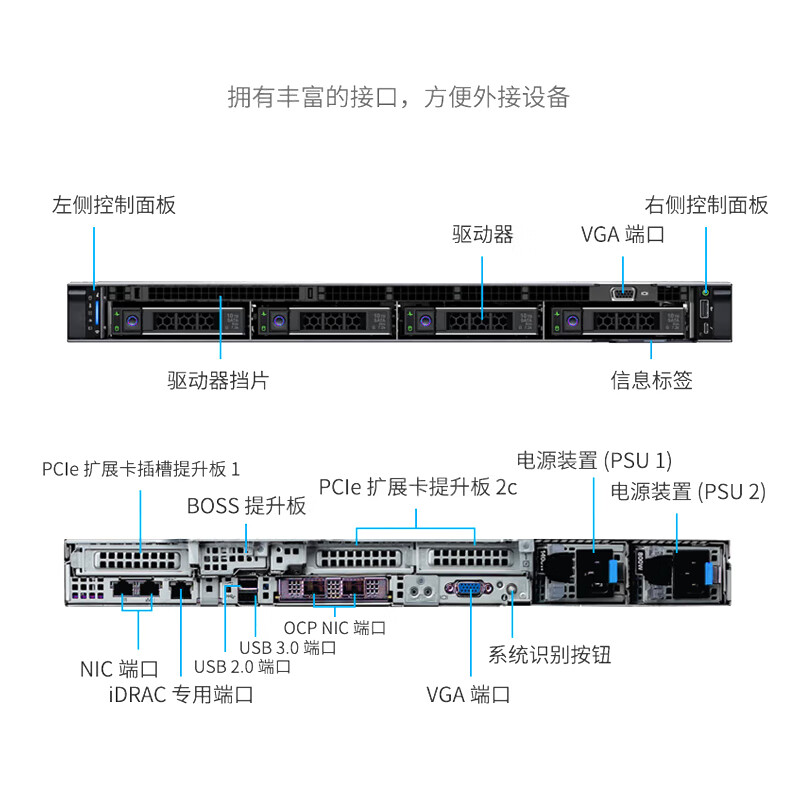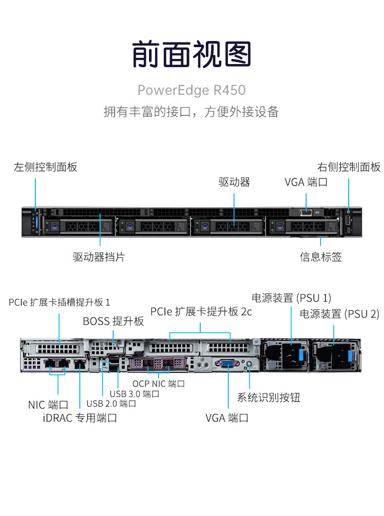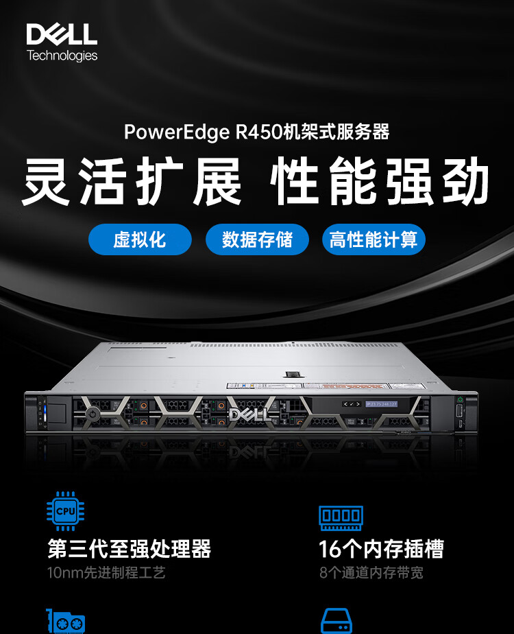 戴尔(DELL)PowerEdge R450 1U机架式服务器主机 双路高性能存储数据库虚拟化服务器