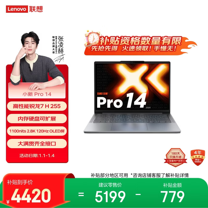 联想小新Pro14 轻薄笔记本电脑 2代酷睿Ultra5 32G 1T 2.8K OLED 120Hz 1100nits【国家补贴】