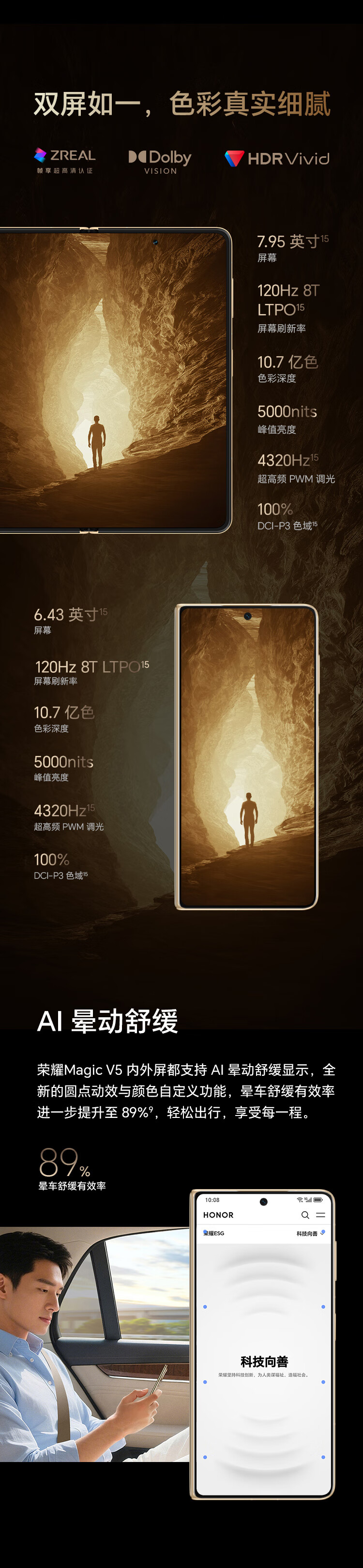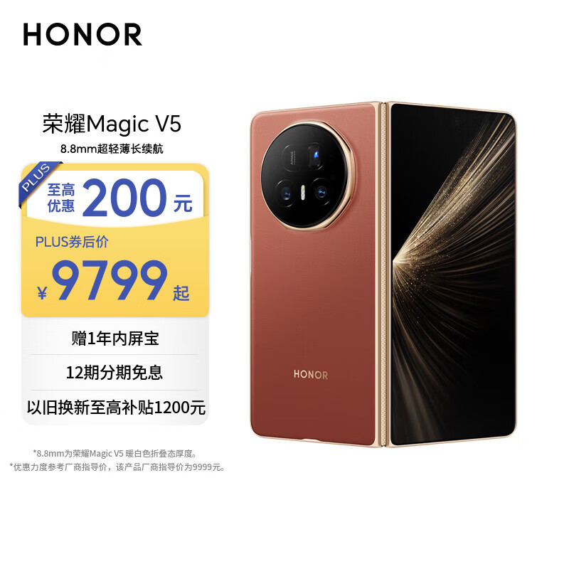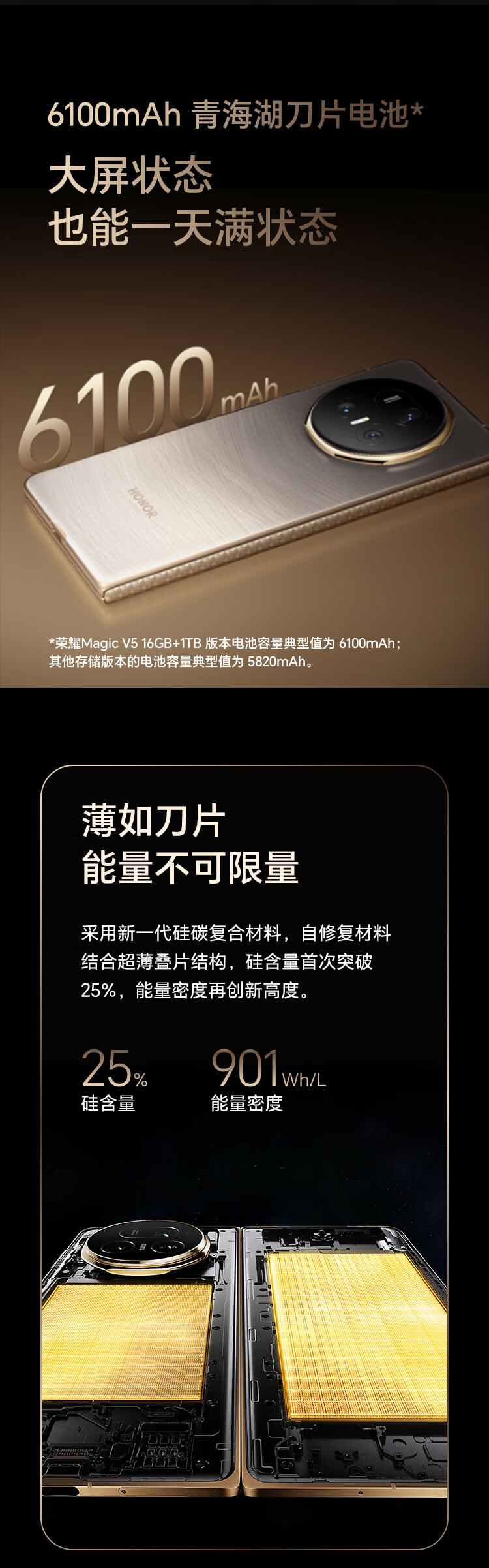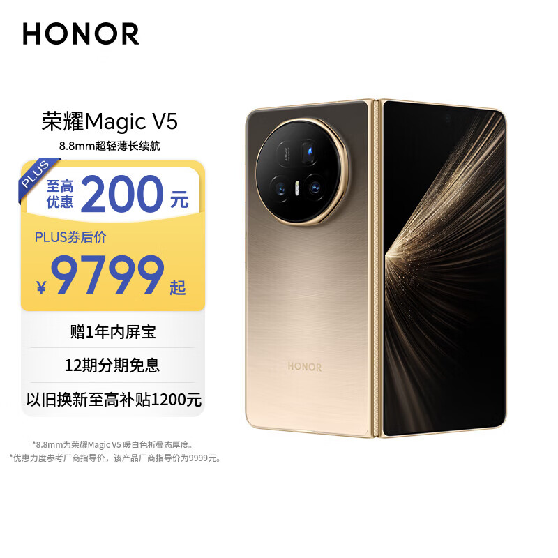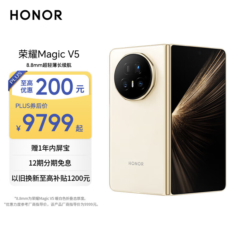 荣耀Magic V5 16+512 轻薄长续航 5820mAh青海湖电池 骁龙8至尊版 AI 折叠屏手机