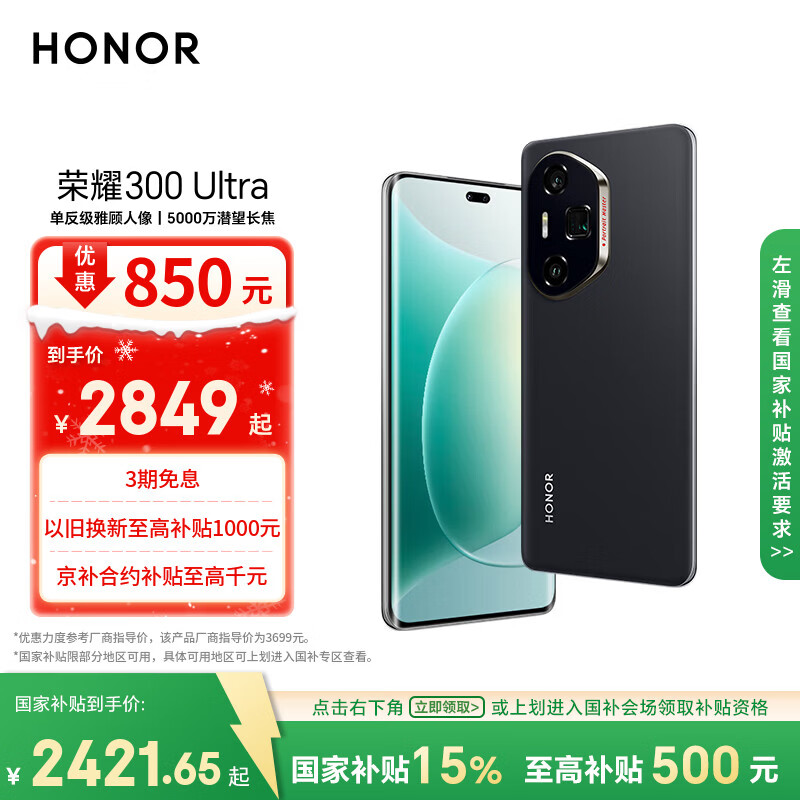 荣耀300 Ultra 单反级雅顾人像 5000万潜望长焦 12+512 山茶白 5G AI 新款 拍照手机 国家补贴