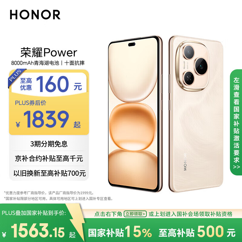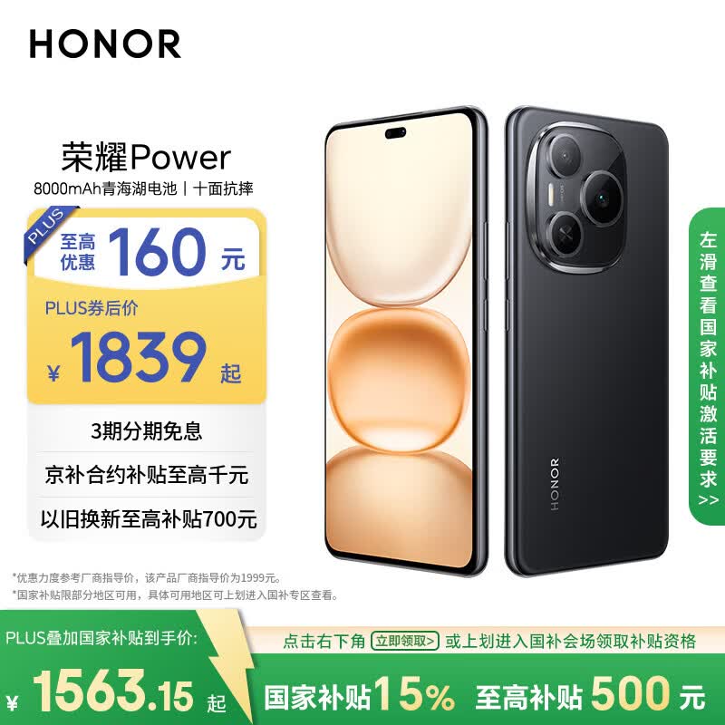 荣耀Power 8+256 8000mAh青海湖电池 荣耀自研C1+通讯芯片 十面抗摔 AI 5G手机