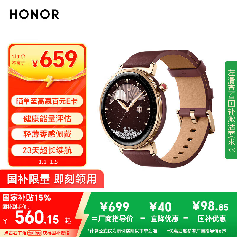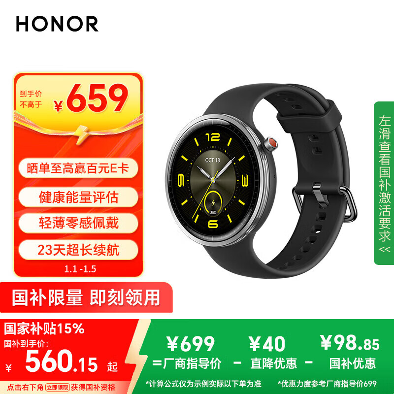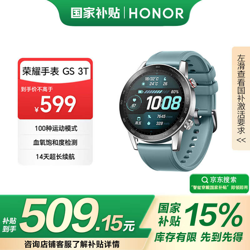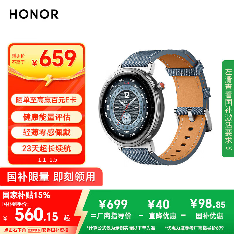 荣耀手表Fit 44mm【国家补贴】活力版 海风蓝 超轻薄超长续航NFC智能运动手表 GS3i升级款男女表