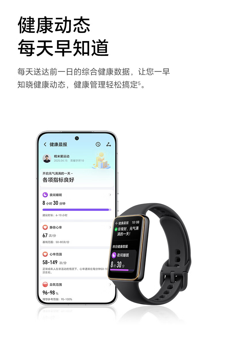 荣耀(HONOR)手环10 标准版【国家补贴】银石灰 智能运动手环 健康晨报 心脏健康守护 心率血氧监测送女友
