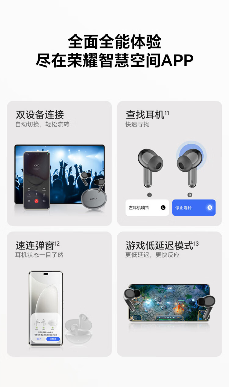 荣耀Earbuds 4i 蓝牙耳机 荣耀耳机 通话降噪 长续航 华为FreeBuds 6i同款 适配荣耀华为手机 钛银色