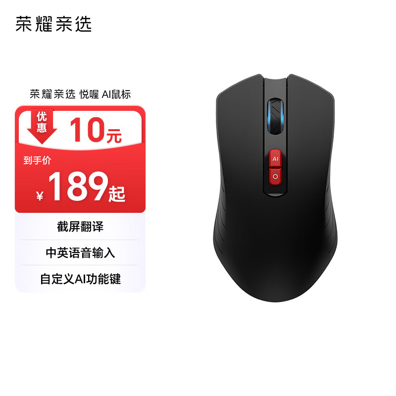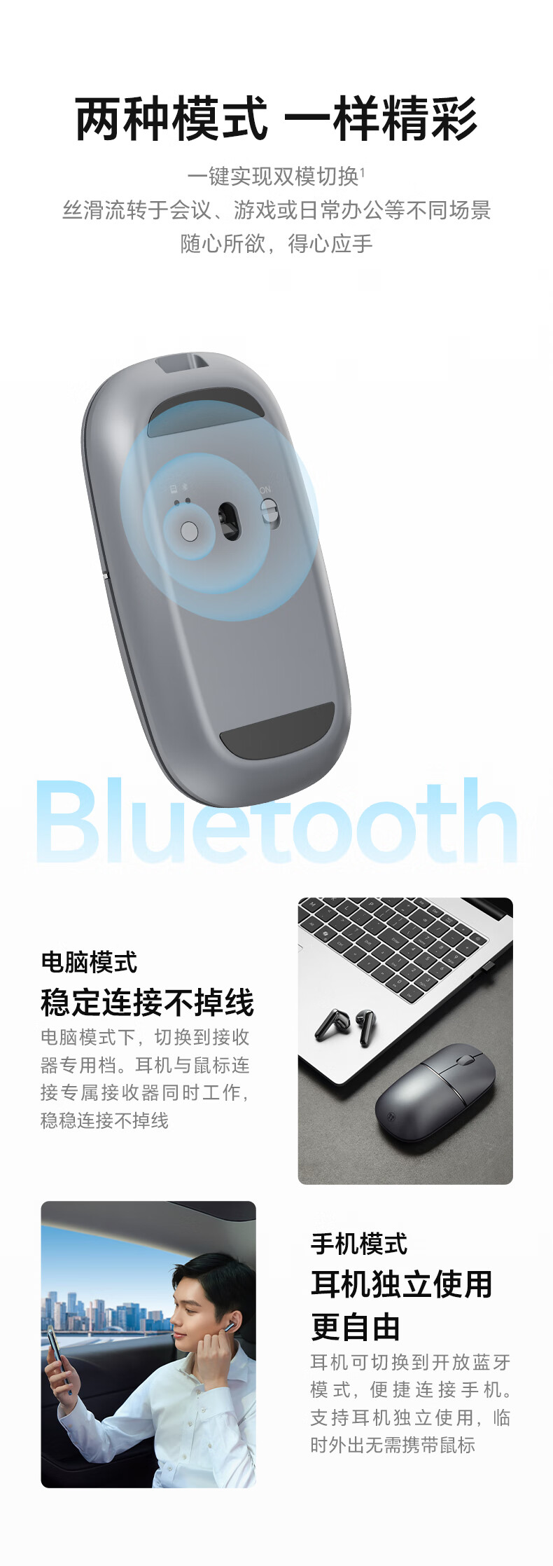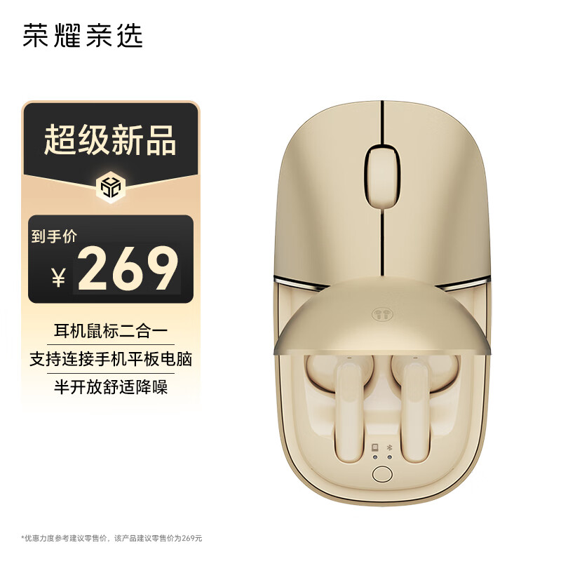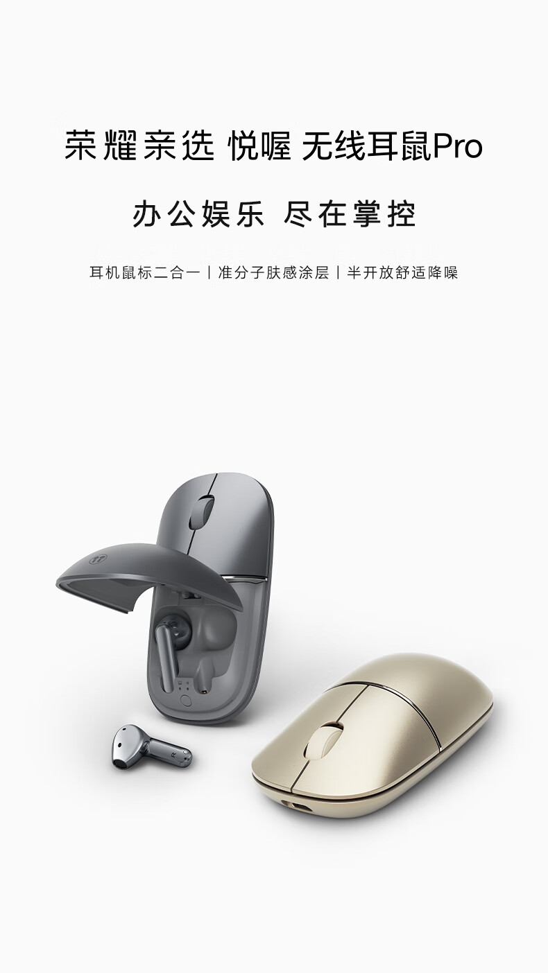 荣耀亲选悦喔 AI鼠标 无线耳鼠Pro 耳机鼠标二合一 蓝牙鼠标蓝牙耳机 主动降噪 长续航 办公游戏 星空灰