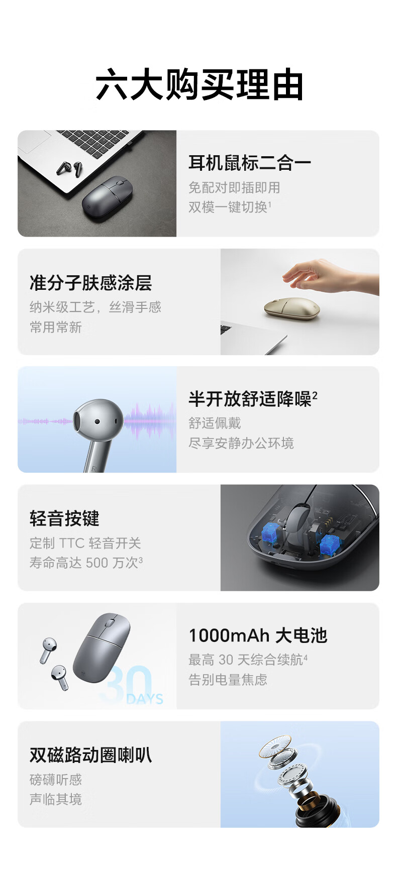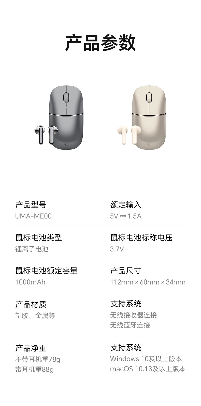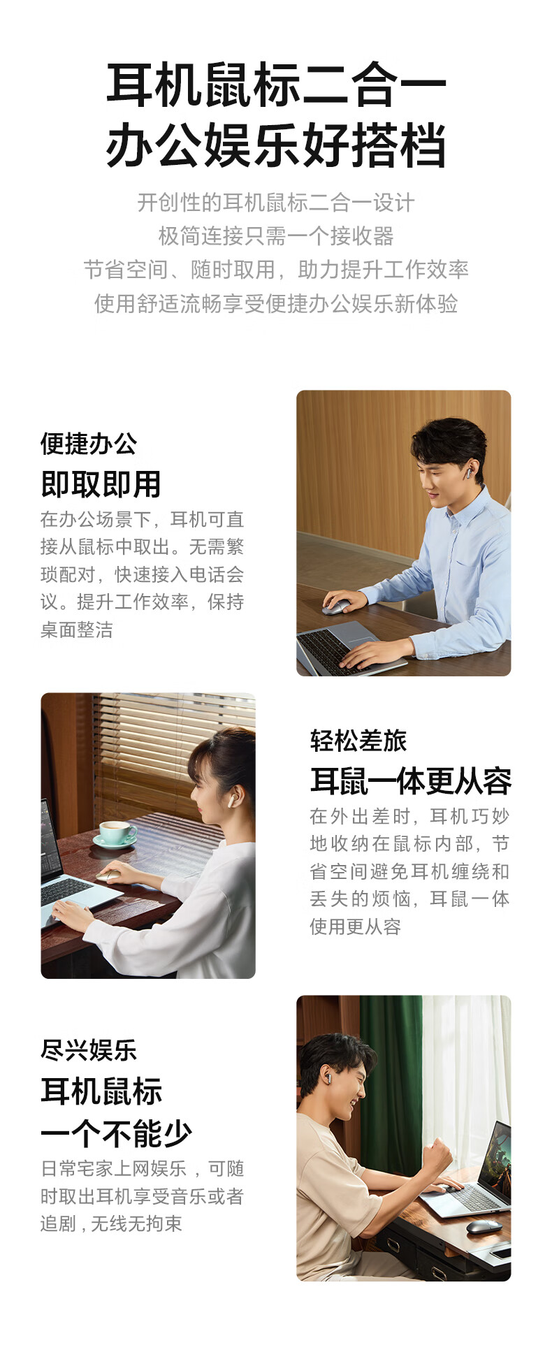 荣耀亲选悦喔 AI鼠标 无线耳鼠Pro 耳机鼠标二合一 蓝牙鼠标蓝牙耳机 主动降噪 长续航 办公游戏 星空灰