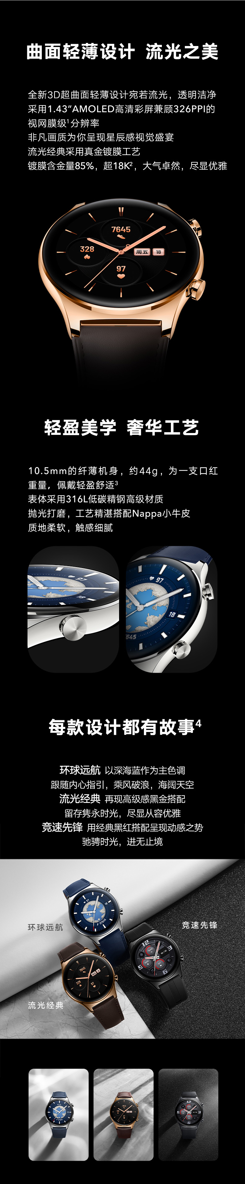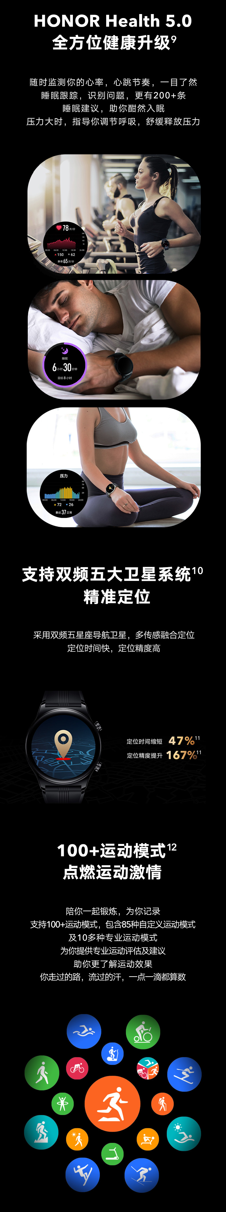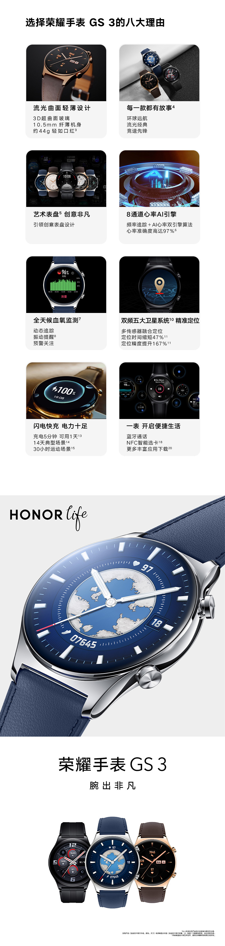 荣耀手表GS 3 环球远航智能轻奢手表14天强劲续航8通道心率AI引擎100+运动模式 龙年表盘新年礼物