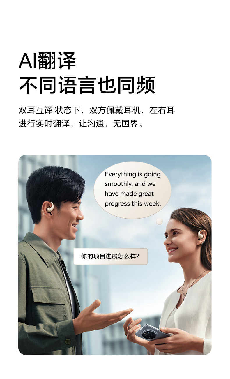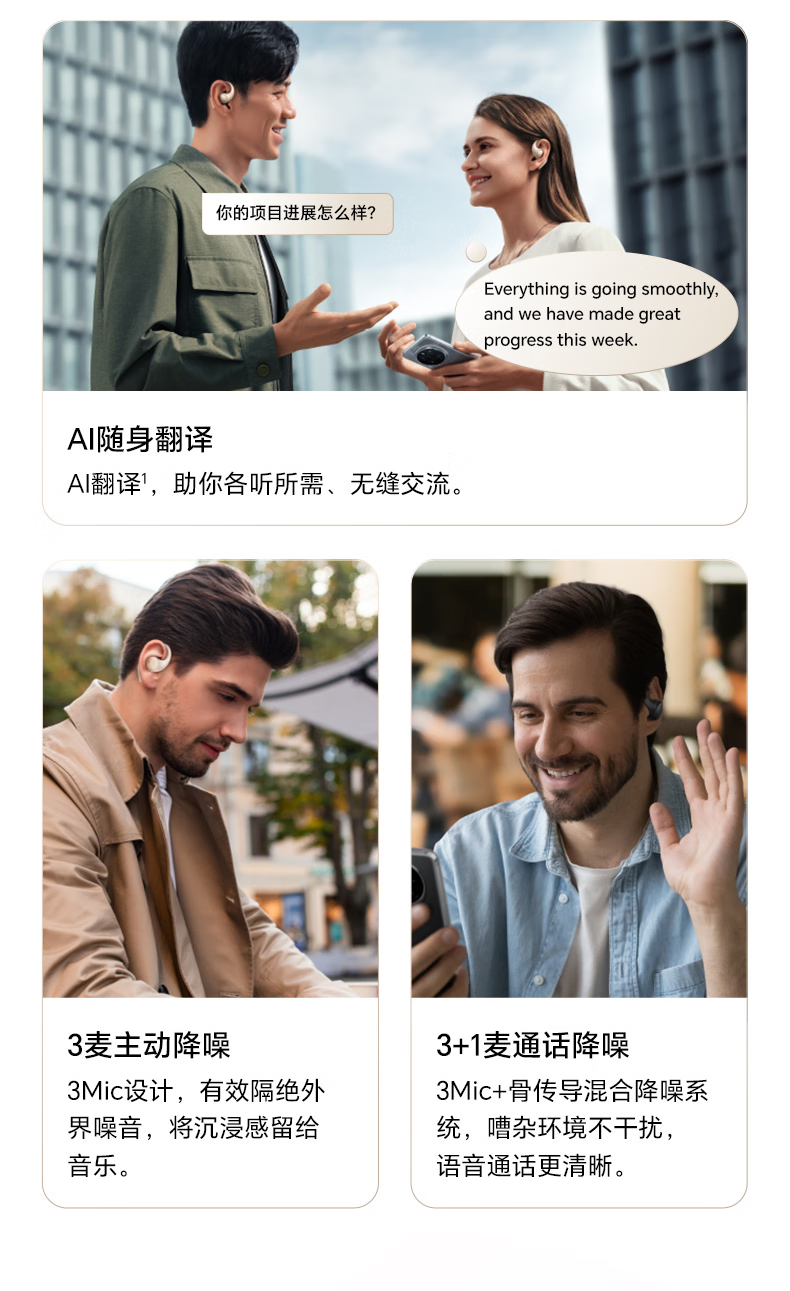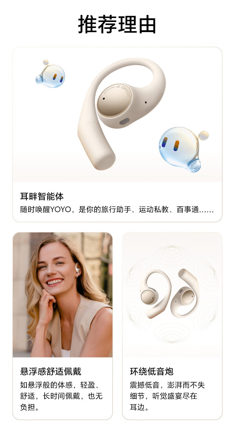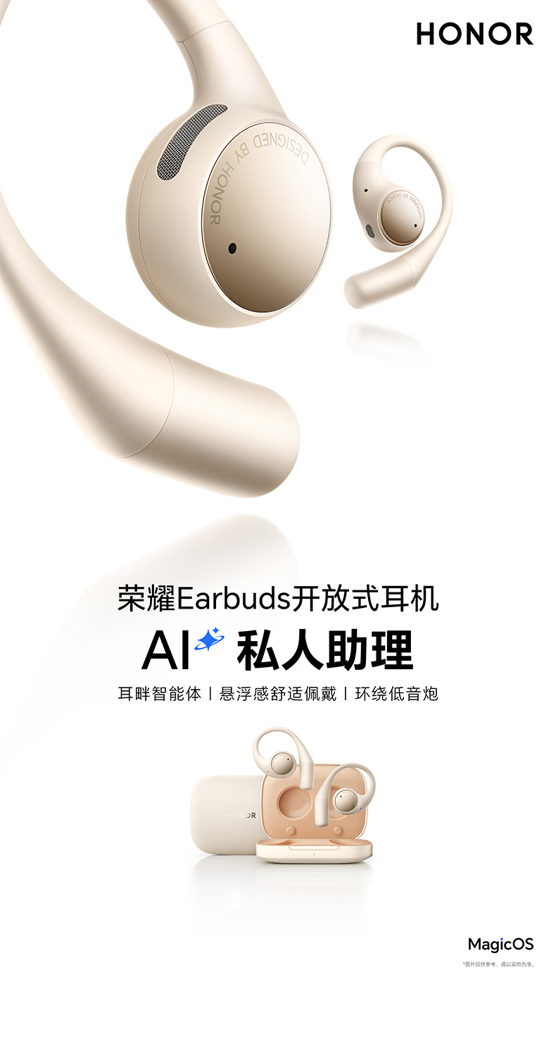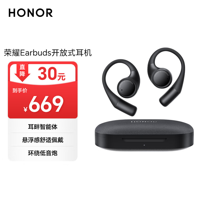 荣耀Earbuds开放式耳机 荣耀耳机蓝牙耳机 挂耳式AI耳机通话降噪 适配荣耀华为手机【翻译耳机】