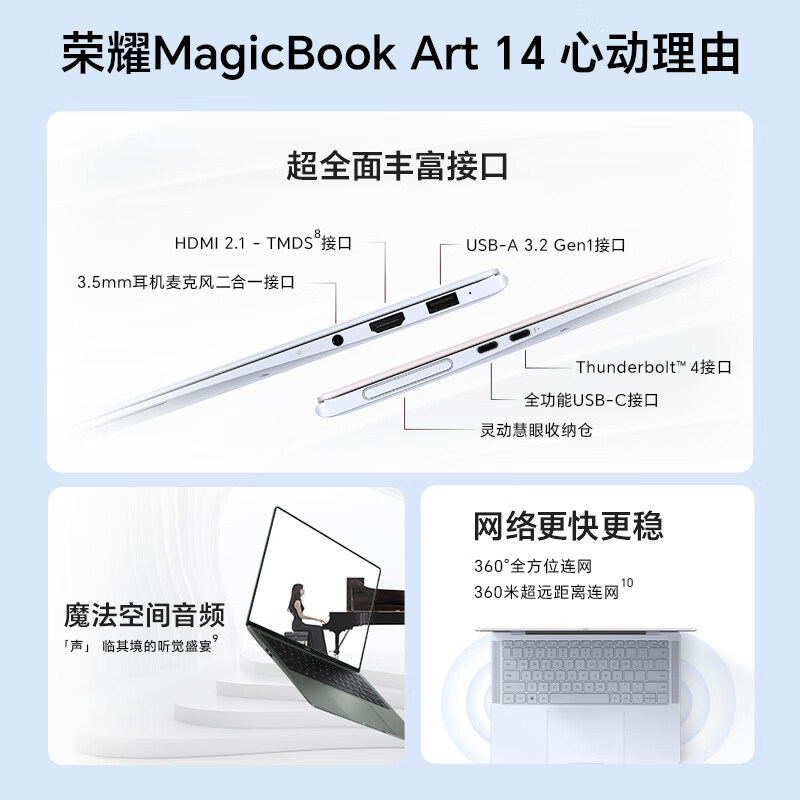 荣耀MagicBook Art 14【国家补贴】1kg超轻薄AI笔记本电脑 酷睿Ultra7 32+1T 3.1K绿洲护眼 夏日橄榄