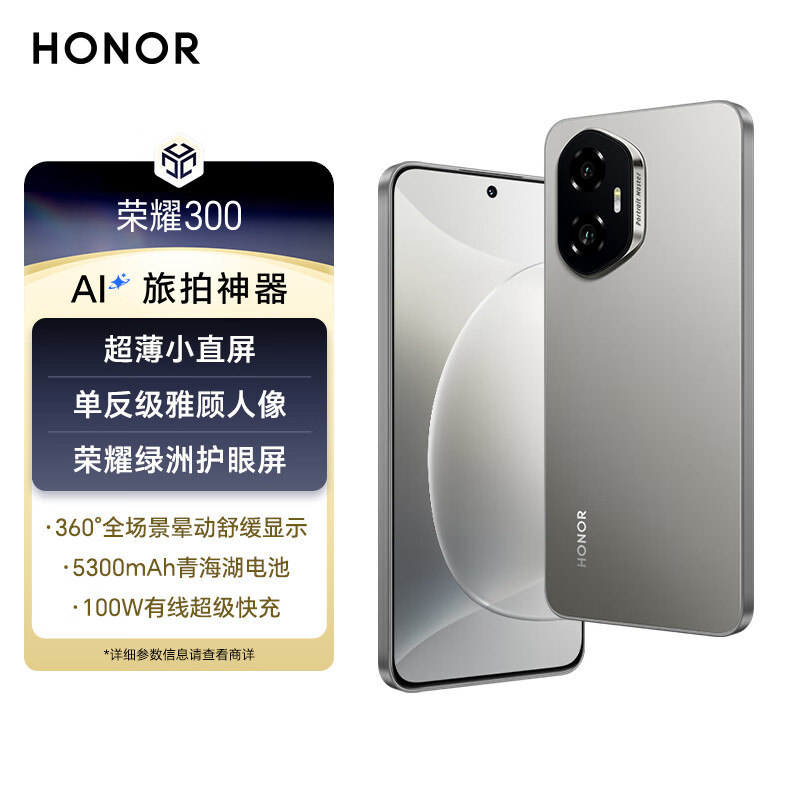荣耀300 超薄小直屏 单反级雅顾人像 荣耀绿洲护眼屏 12+256 苍山灰 5G AI 新款 拍照手机 国家补贴