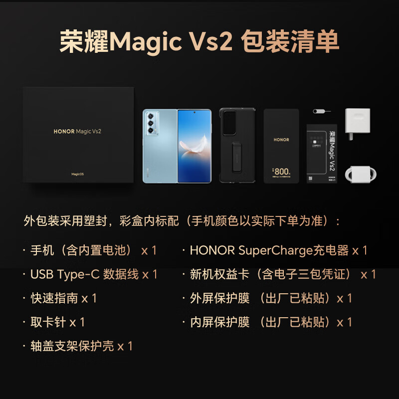 荣耀Magic Vs2 折叠屏 超轻薄设计 零风险调光护眼双屏 骁龙芯片 12+256 绒黑色 5G AI手机
