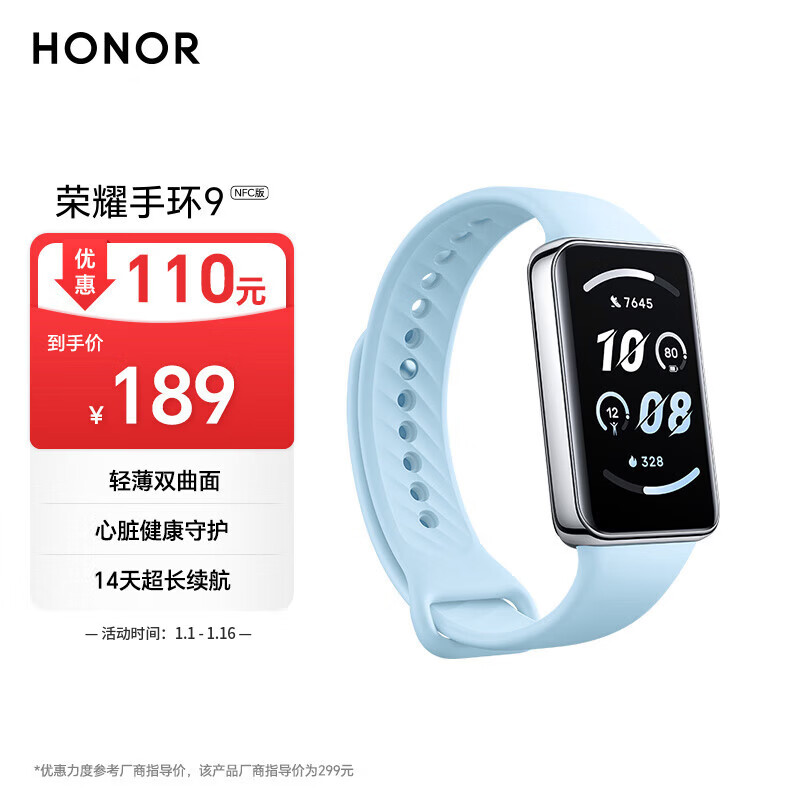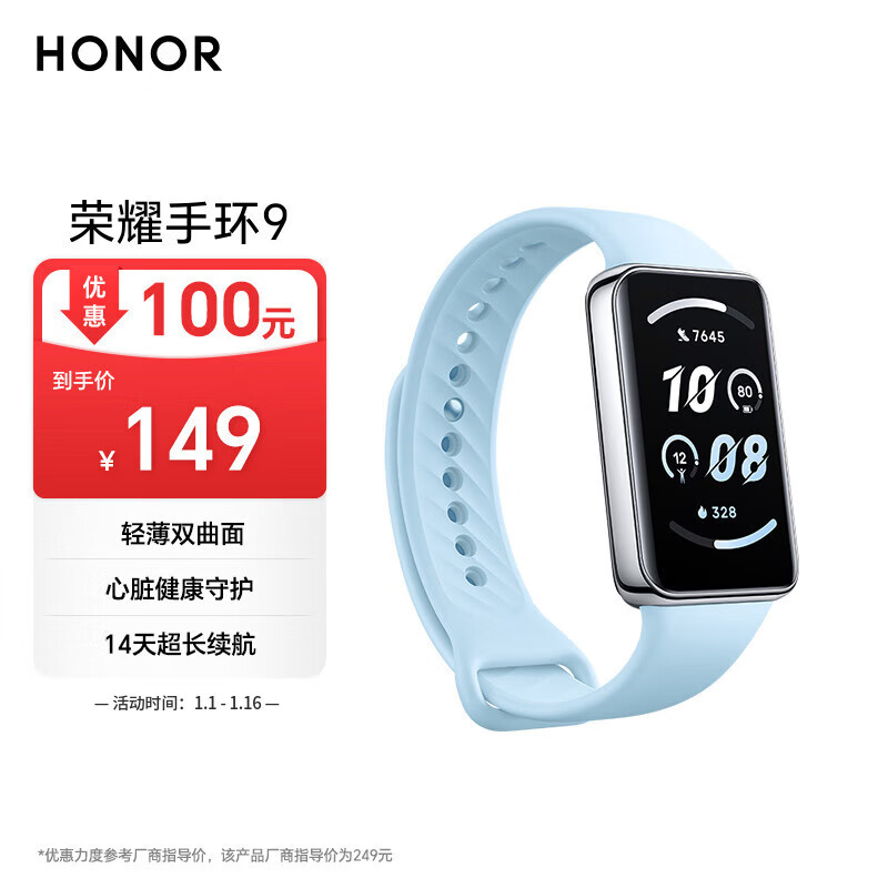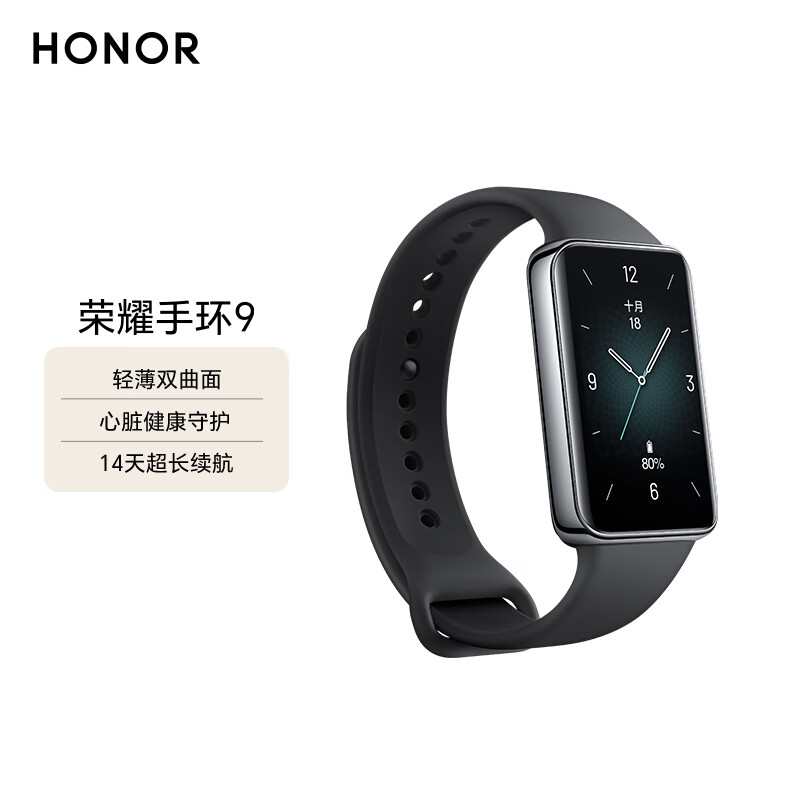 荣耀(HONOR)手环9 曜石黑 轻薄双曲面 心脏健康守护 14天超长续航 智能手环运动手环 送男友