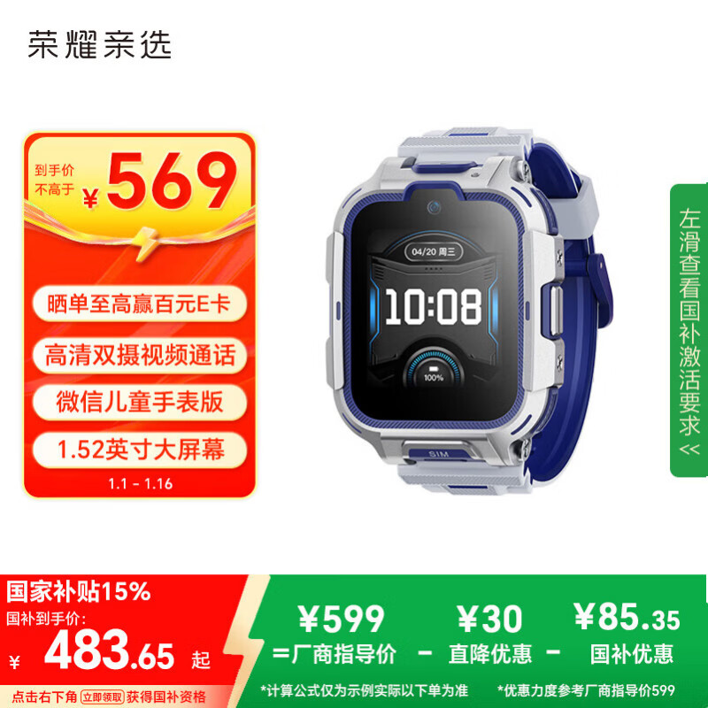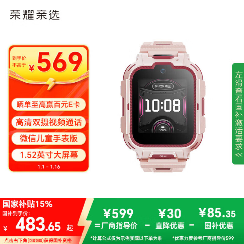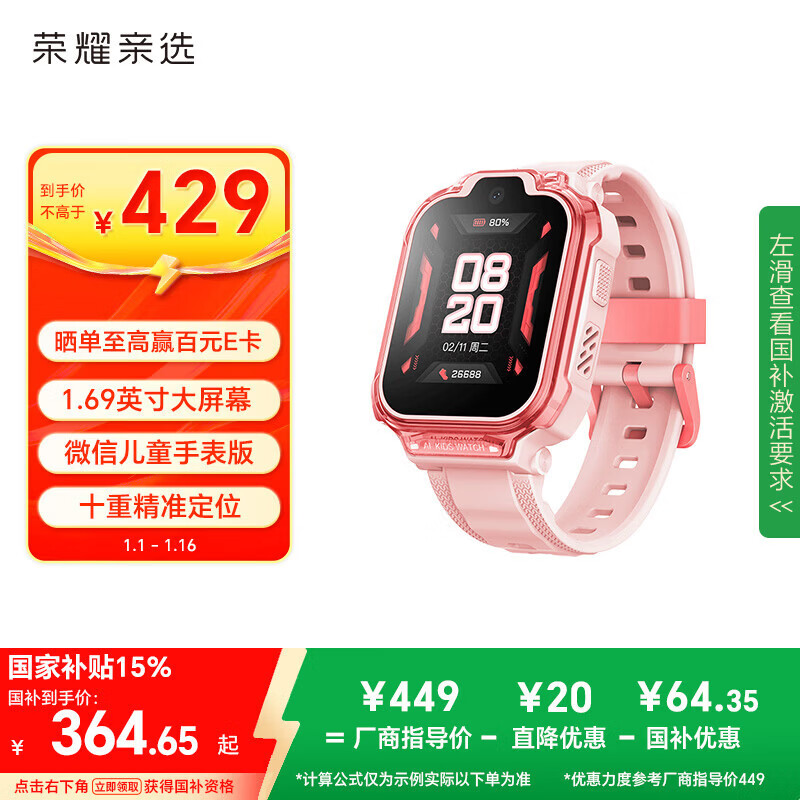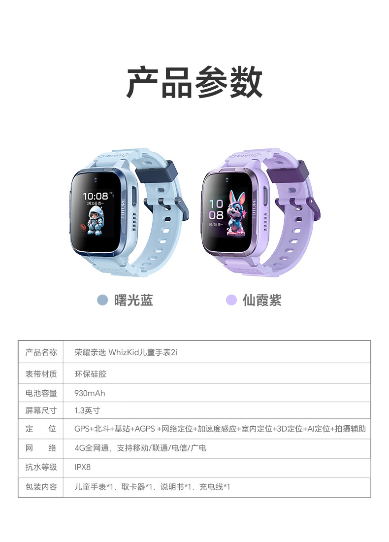 荣耀亲选WhizKid儿童手表2i 仙霞紫 电话手表 10重精准定位 长续航 4G全网通 男女生