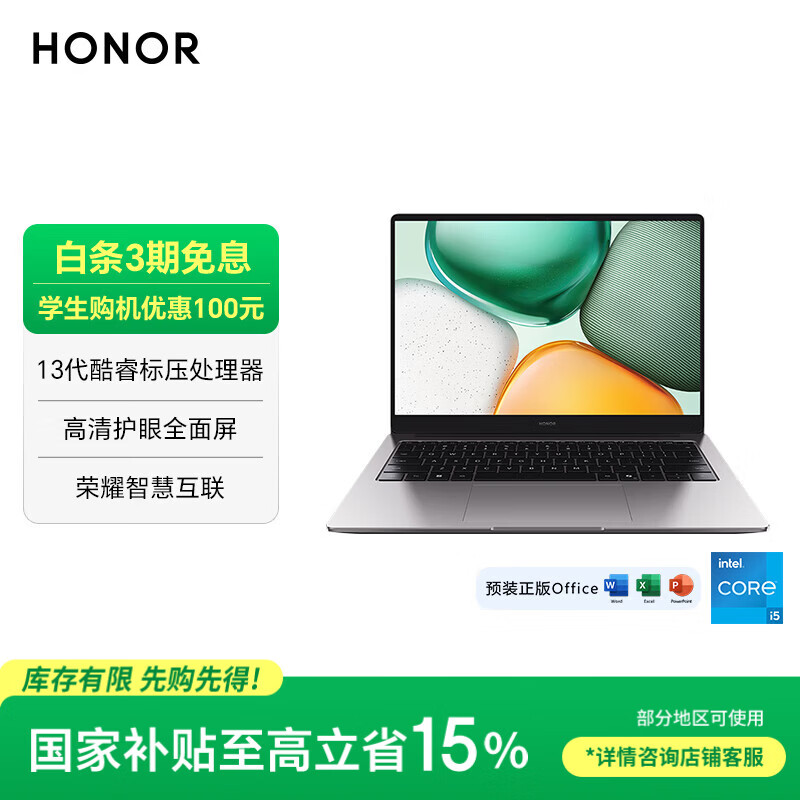 荣耀MagicBook X16 战斗版【国家补贴】英特尔酷睿i5标压 16+512G 16吋高清护眼屏 轻薄本笔记本电脑