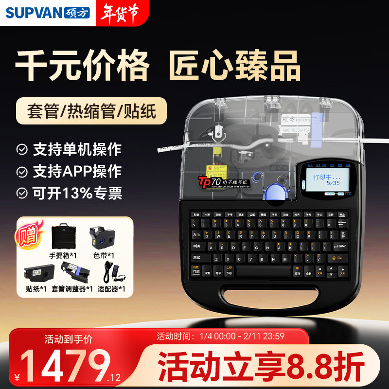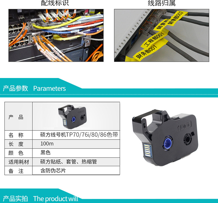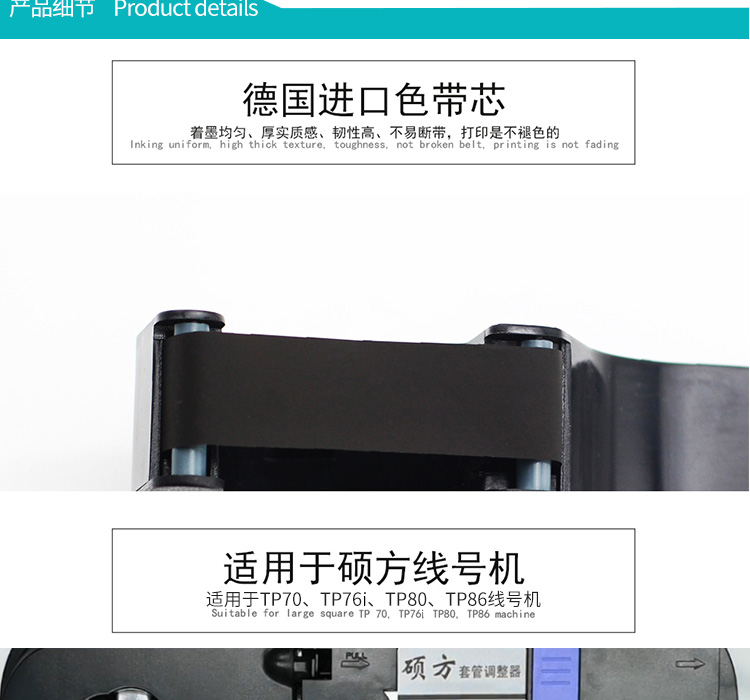 硕方线号机色带号码管打印机打号机TP70/TP76/TP80/TP86色带TP-R1002B 黑色100米