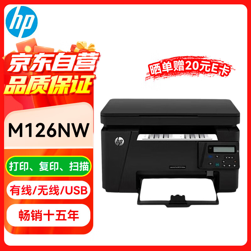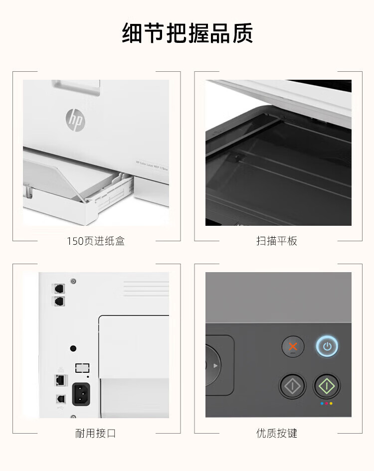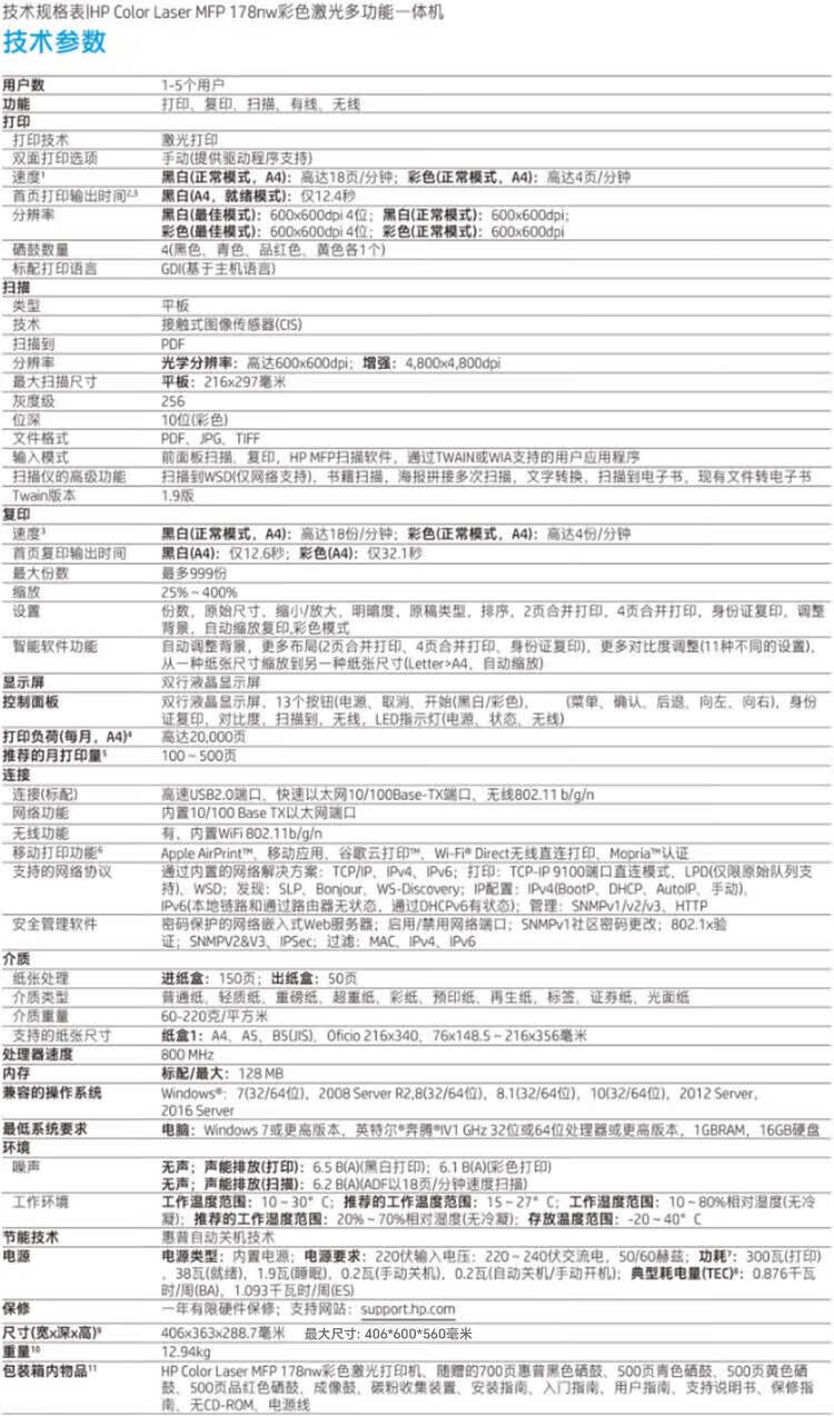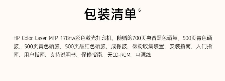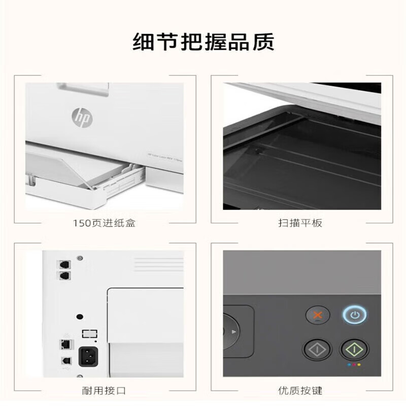 惠普(HP)178nw A4彩色激光多功能一体机三合一打印机 打印复印扫描 有线网络 无线wifi连接