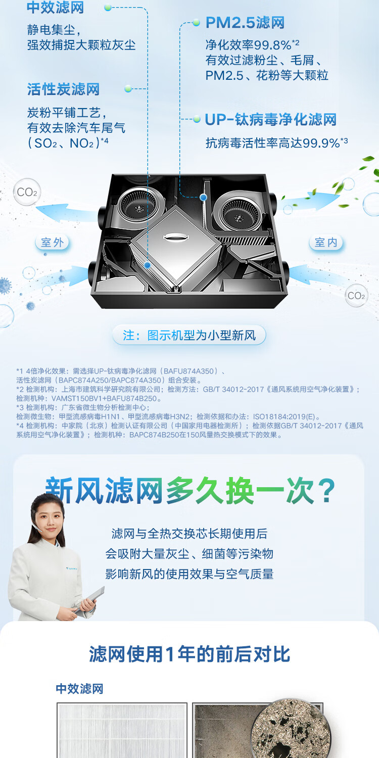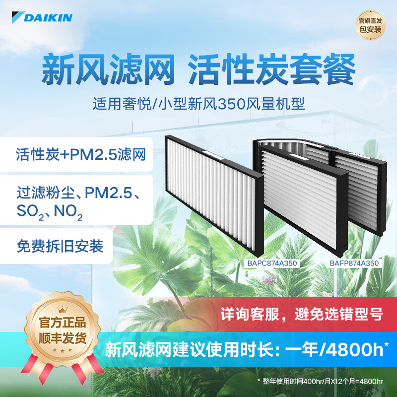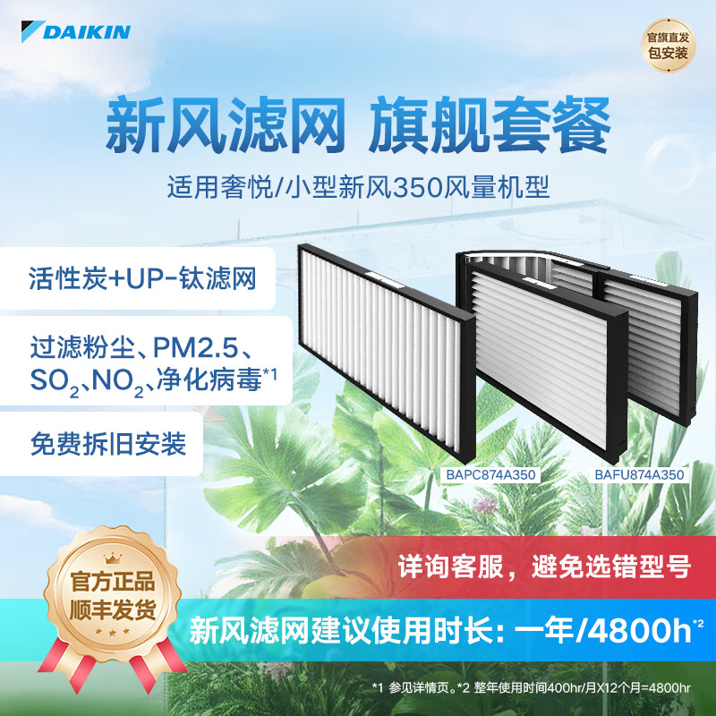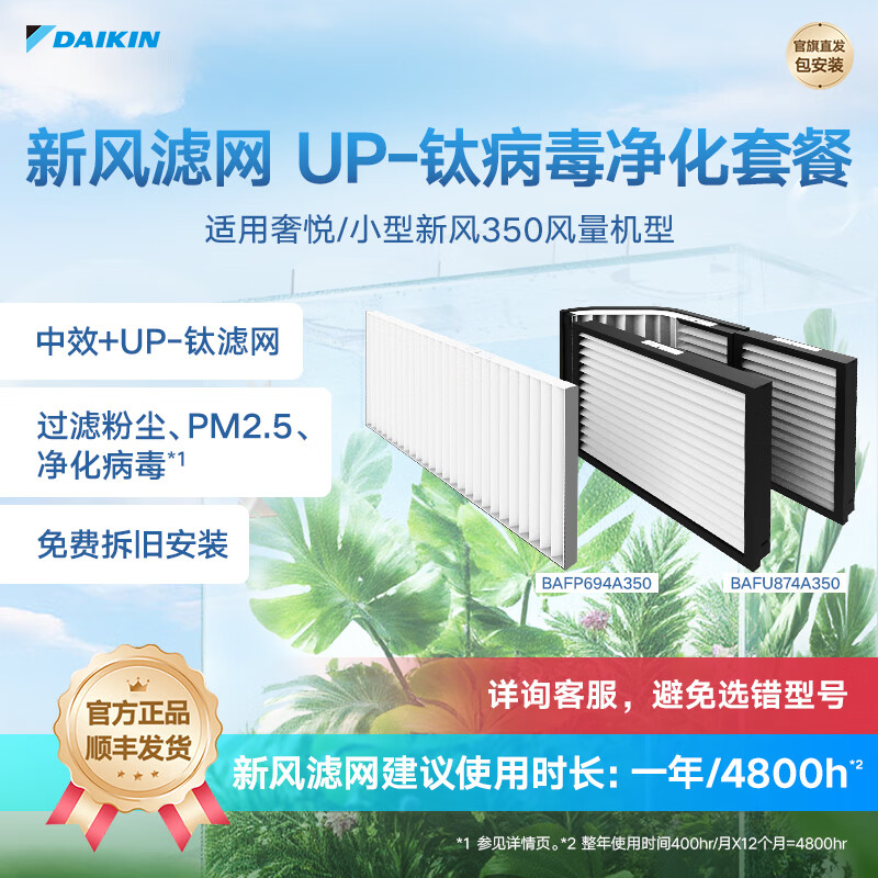 大金(DAIKIN)中央空调 奢悦/小型新风系统过滤网 全热交换器PM2.5活性炭UP钛病毒净化滤网套餐 适用350风量