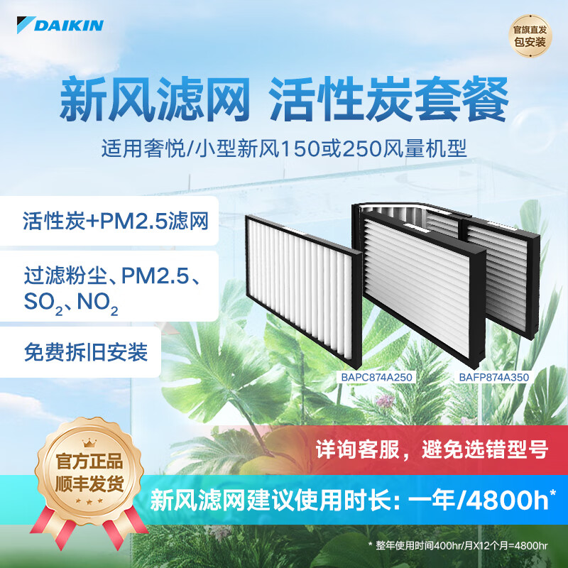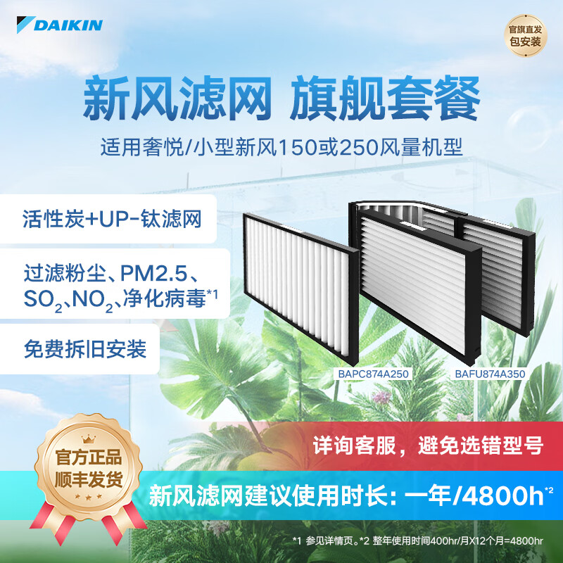 大金(DAIKIN)中央空调奢悦/小型新风系统过滤网 全热交换器PM2.5活性炭UP钛病毒净化滤网套餐适用150/250风量