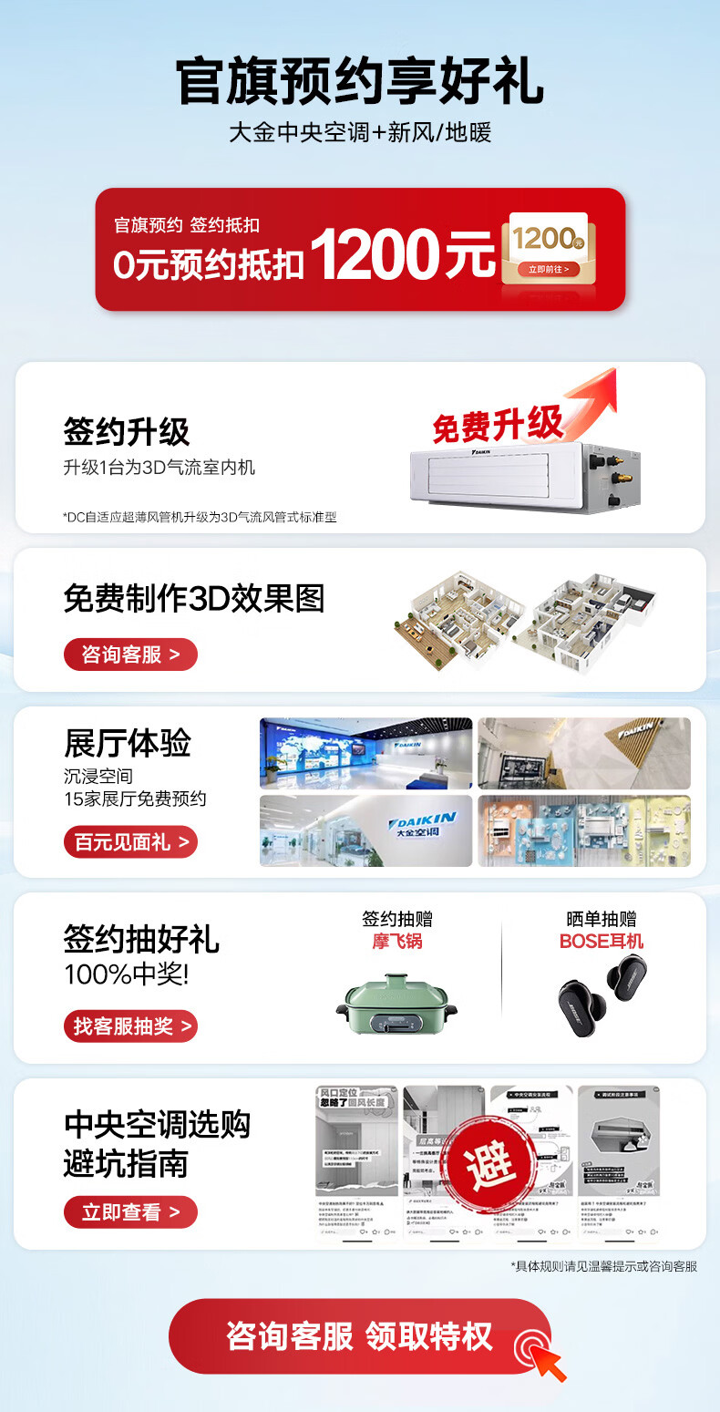 大金(DAIKIN)【0元预约】中央空调+新风/地暖地暖中央空气系统家用多联机全屋装修设计1V1定制大额订金详询客服 【0元预约】地暖+中央空调