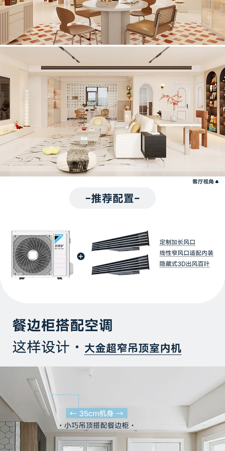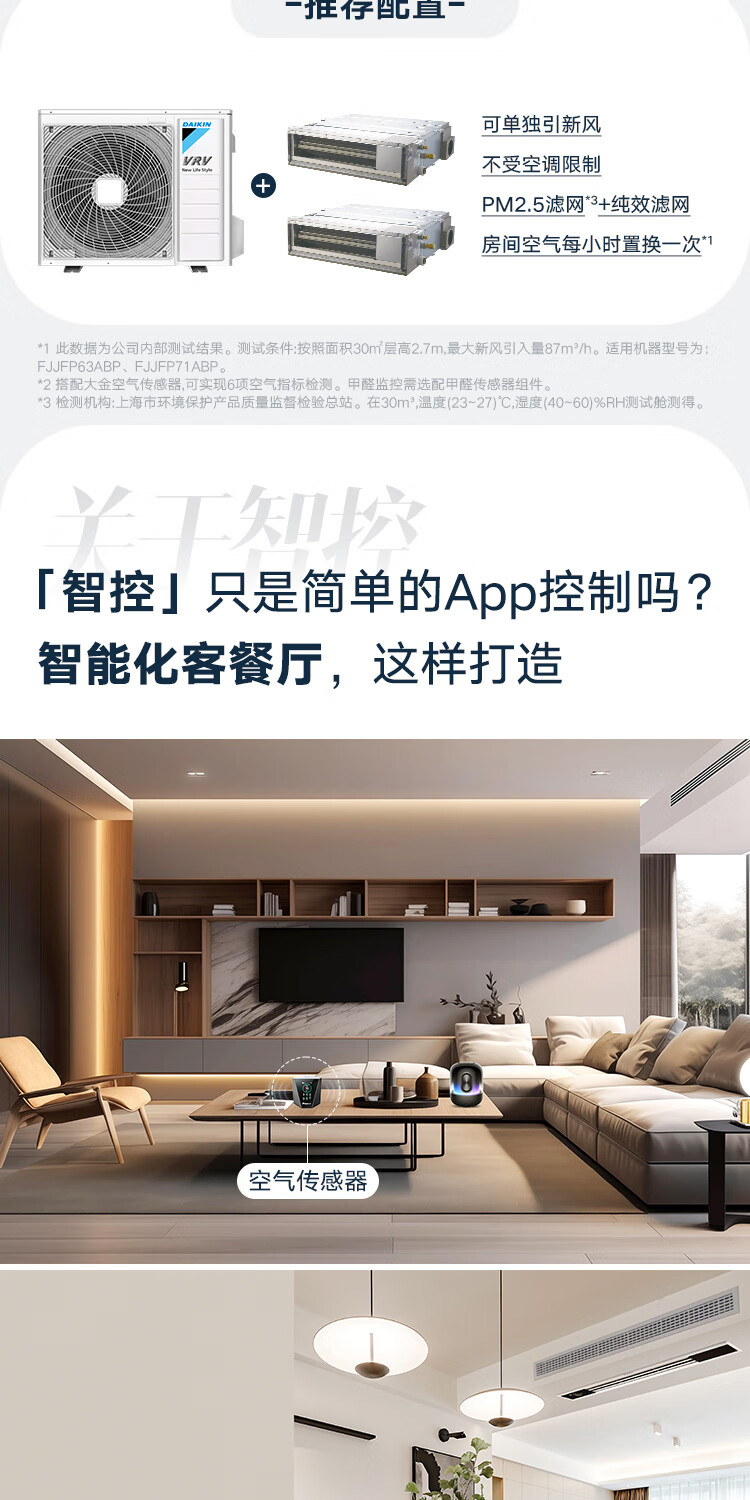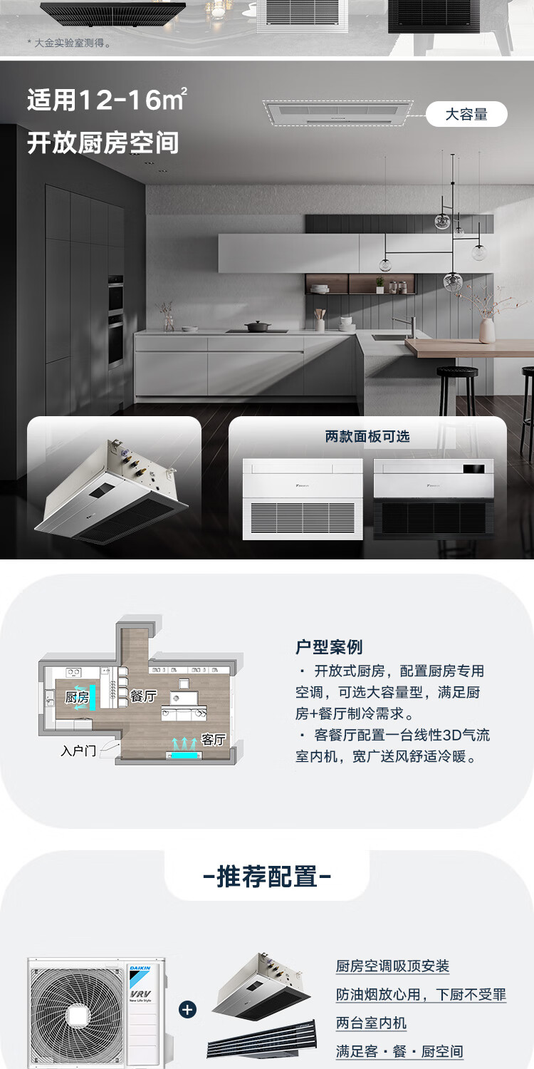大金(DAIKIN)中央空调客餐厅风管机一拖二3匹 客厅空调厨房空调 家用多联机变频一级能效