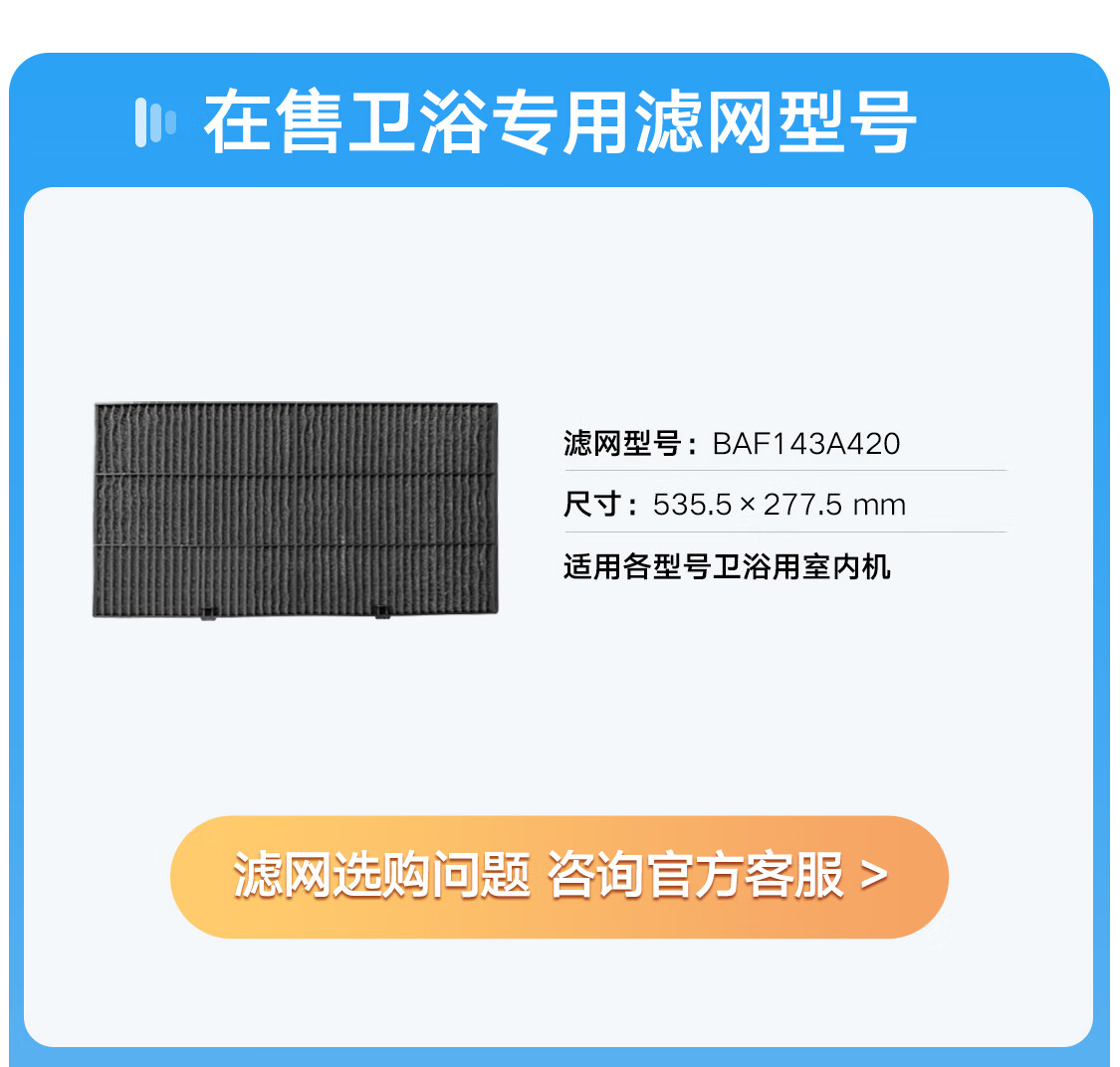 大金(DAIKIN)中央空调卫浴室内机过滤网 可更换 防尘隔尘 专业防霉官方正品 顺丰包邮