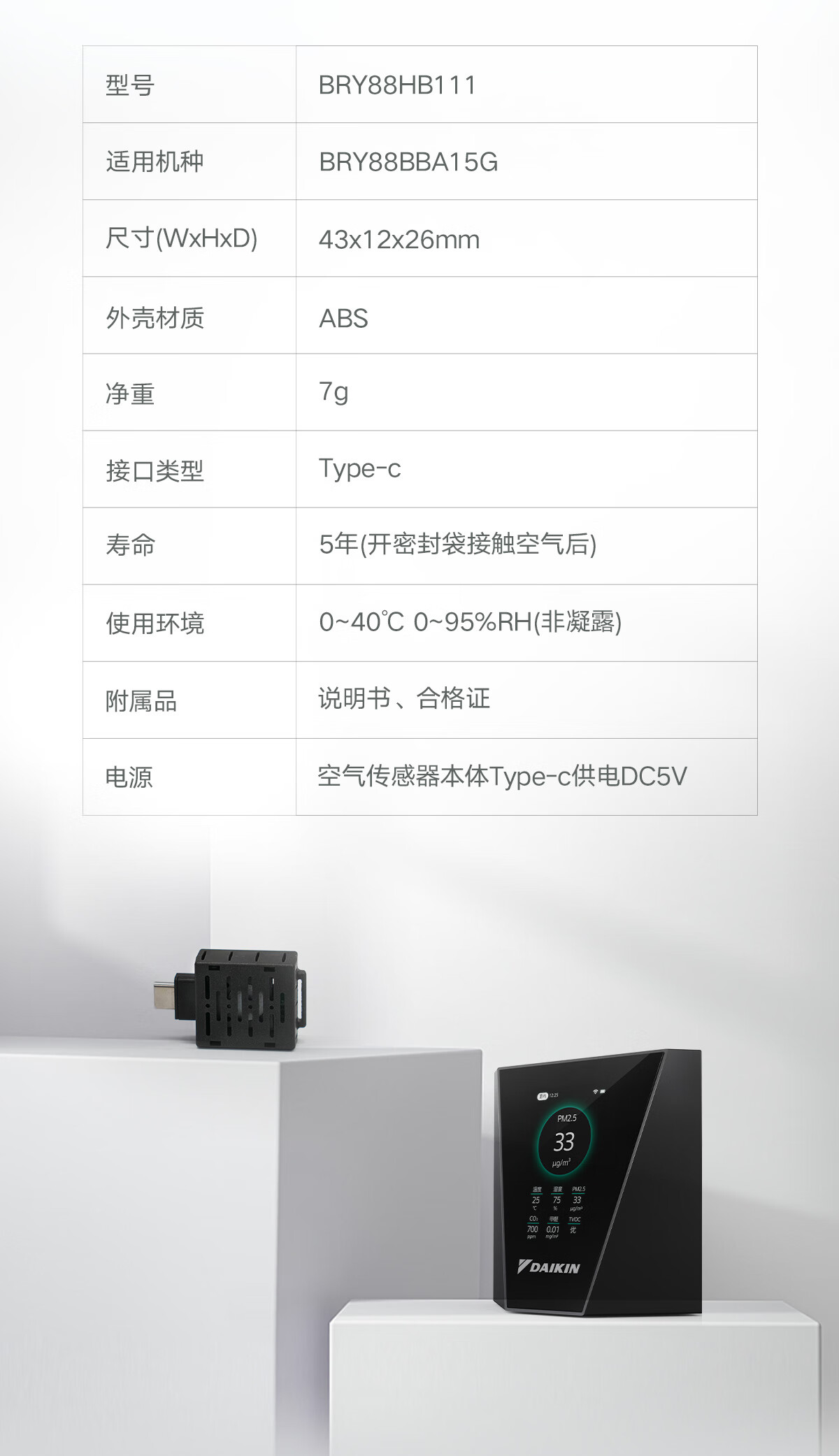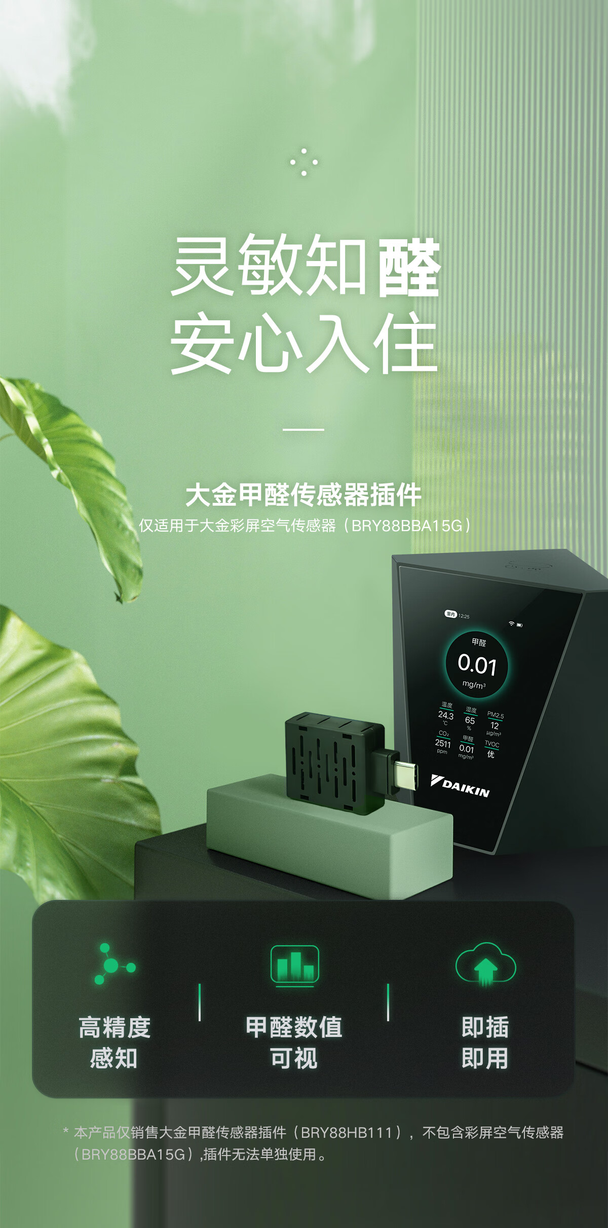 大金(DAIKIN)中央空调甲醛传感器 家用甲醛检测甲醛浓度可视 搭配空气传感器即插即用官方正品顺丰包邮