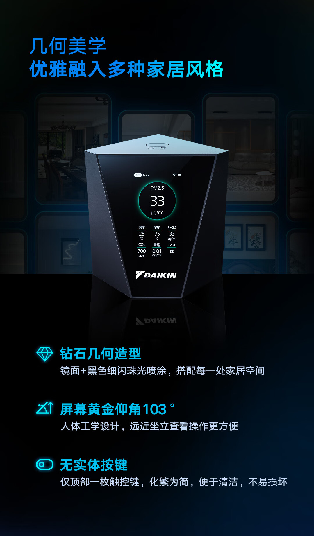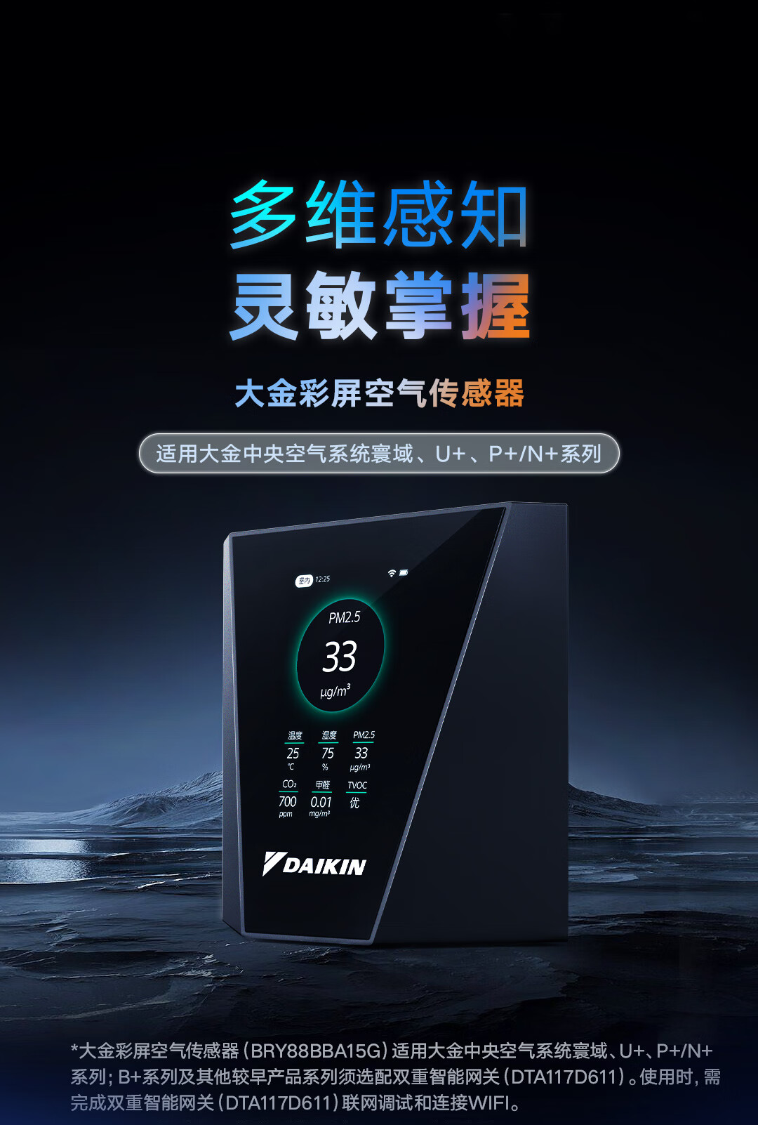 大金(DAIKIN)中央空调彩屏空气传感器家用多维室内空气质量实时监测手机APP智能控制 官方正品顺丰包邮