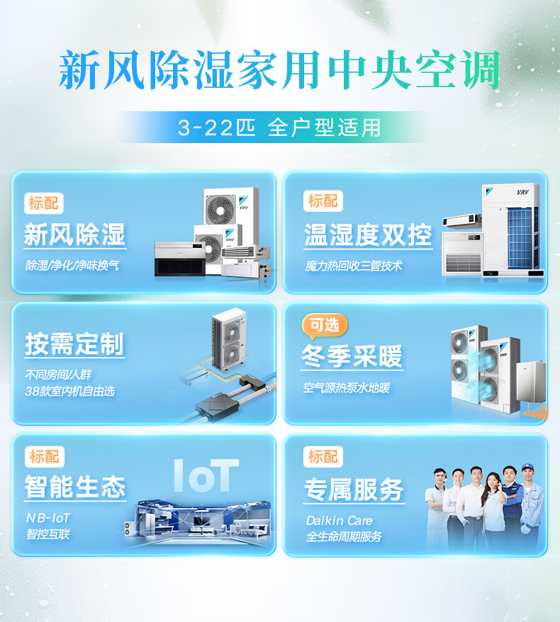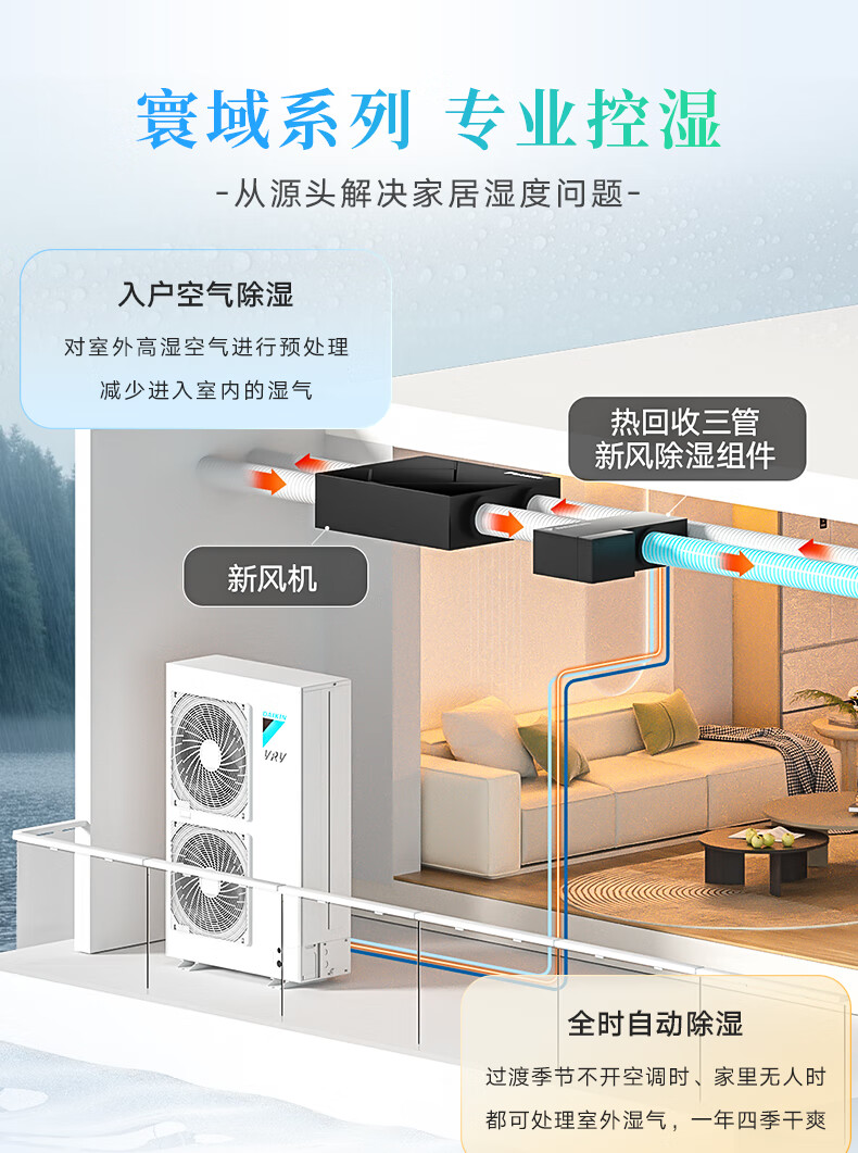 大金(DAIKIN)中央空气系统寰域系列新风除湿家用中央空调一拖四旗舰三管制系列新风地暖除湿多联机变频