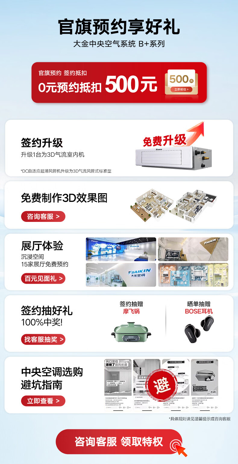大金(DAIKIN)【0元预约】中央空调 家用中央空气系统B+新品系列多联机 变频一级能效 1V1定制大额订金详询客服 【0元预约】3D气流型