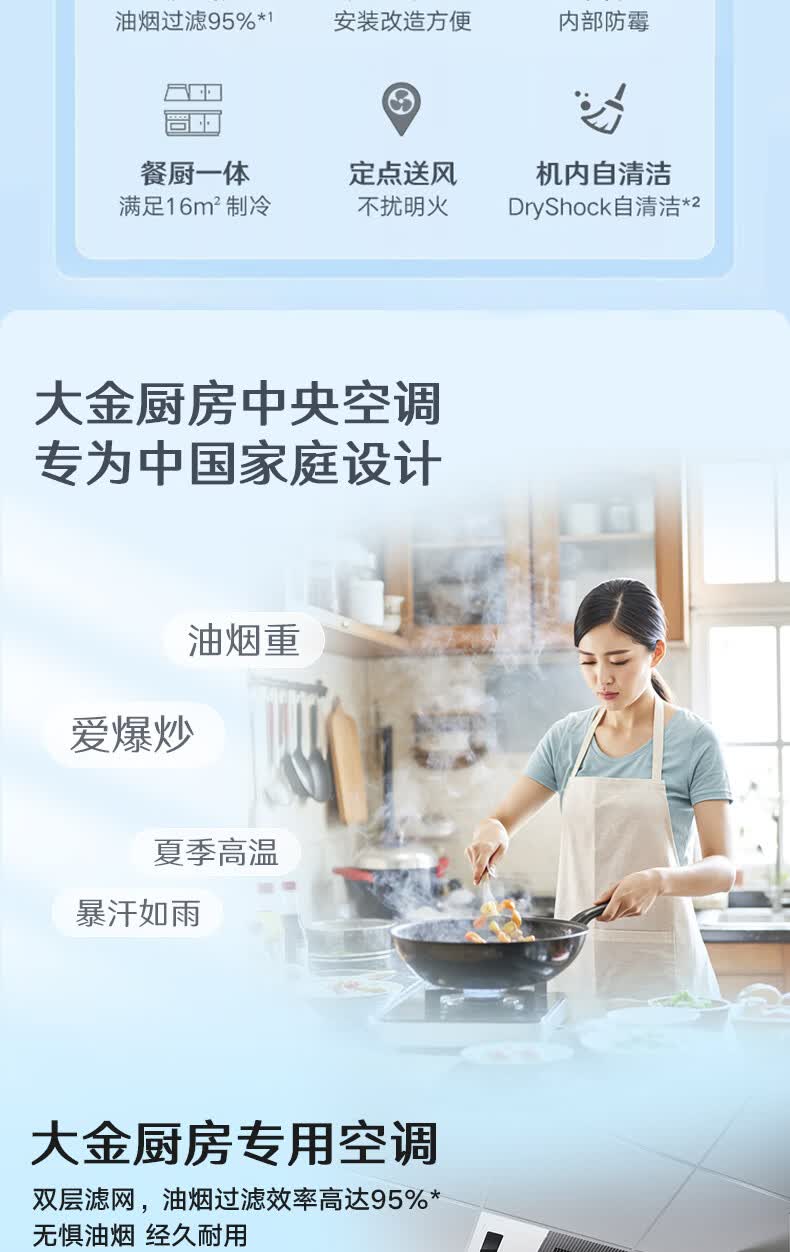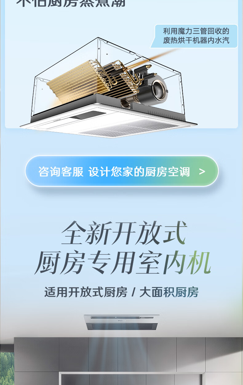 大金(DAIKIN)厨房空调 嵌入式中央空调吸顶吊顶空调抗油烟设计自动除湿暖风照明变频多联机室内机