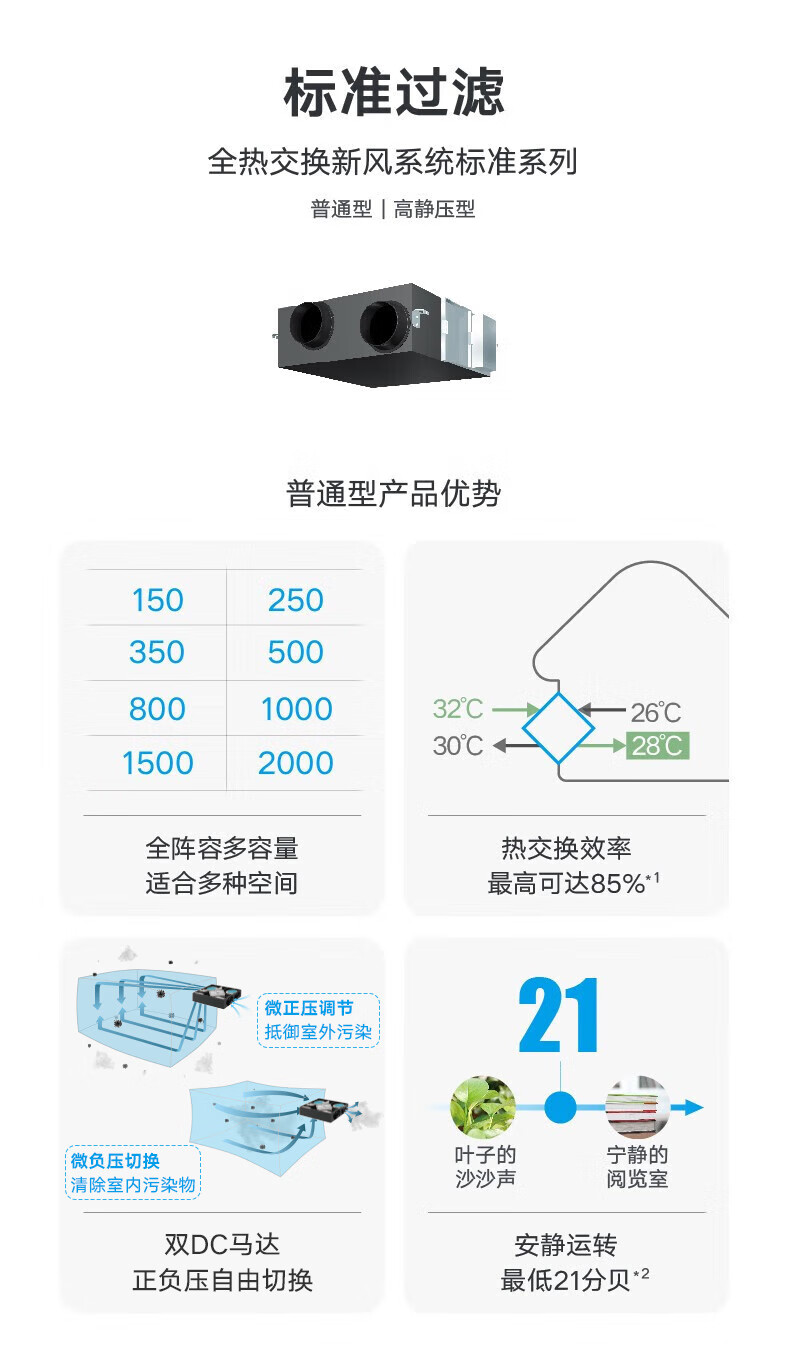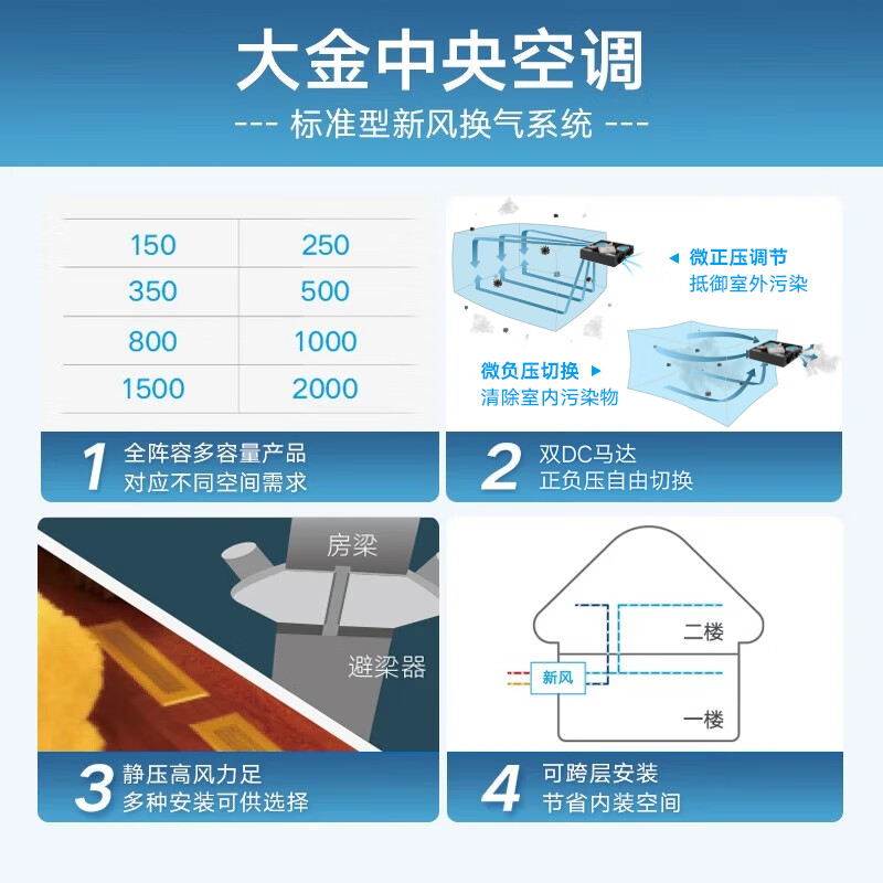 大金(DAIKIN)新风系统标准系列 家用中央新风 全屋新风机换气通风系统 智联中央空调 全屋新风 标准型新风150风量