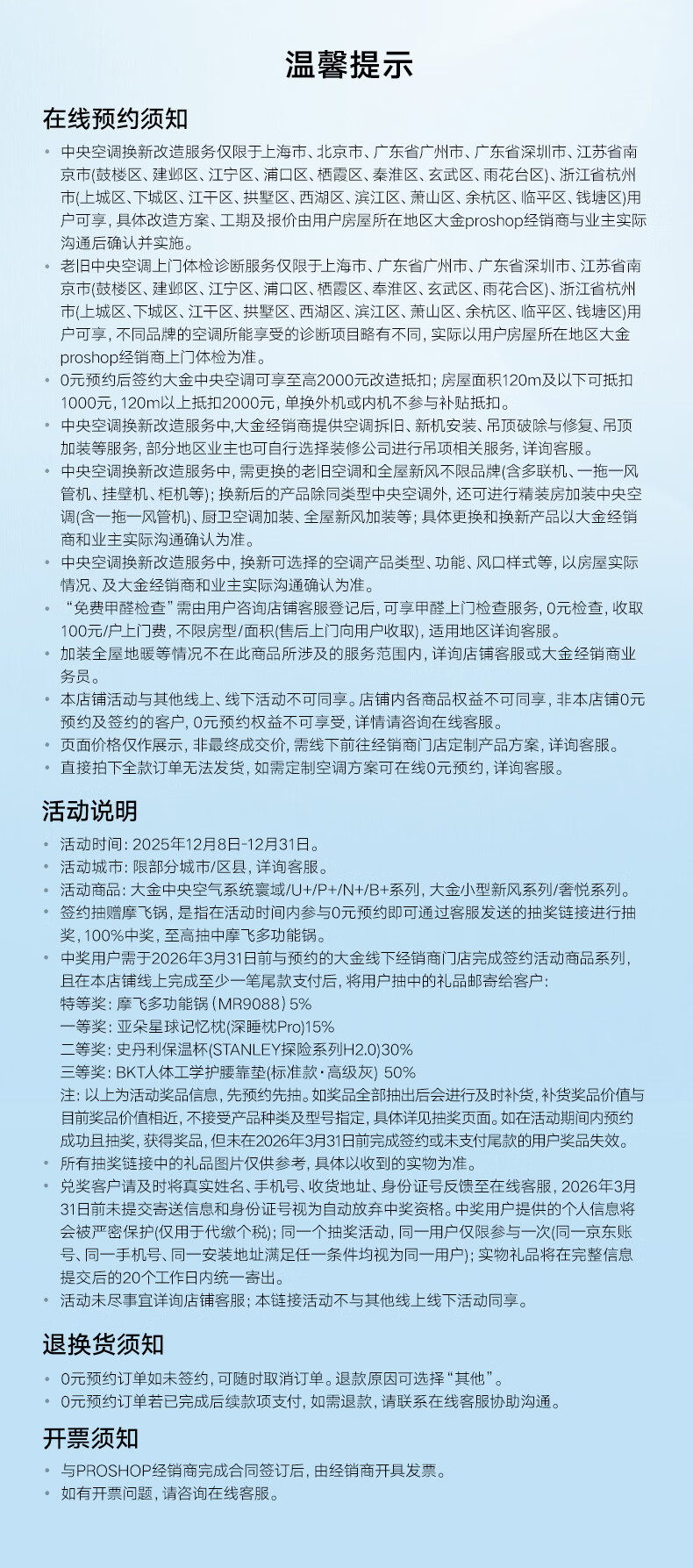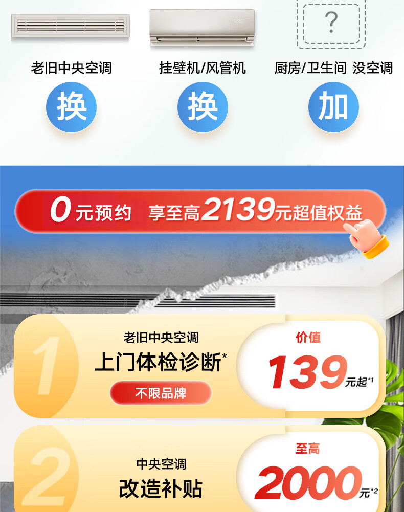 大金(DAIKIN)【0元预约】中央空调翻新改造 一拖三一拖四一拖五家用空调变频体检1V1定制大额订金详询客服 【0元预约】空调体检