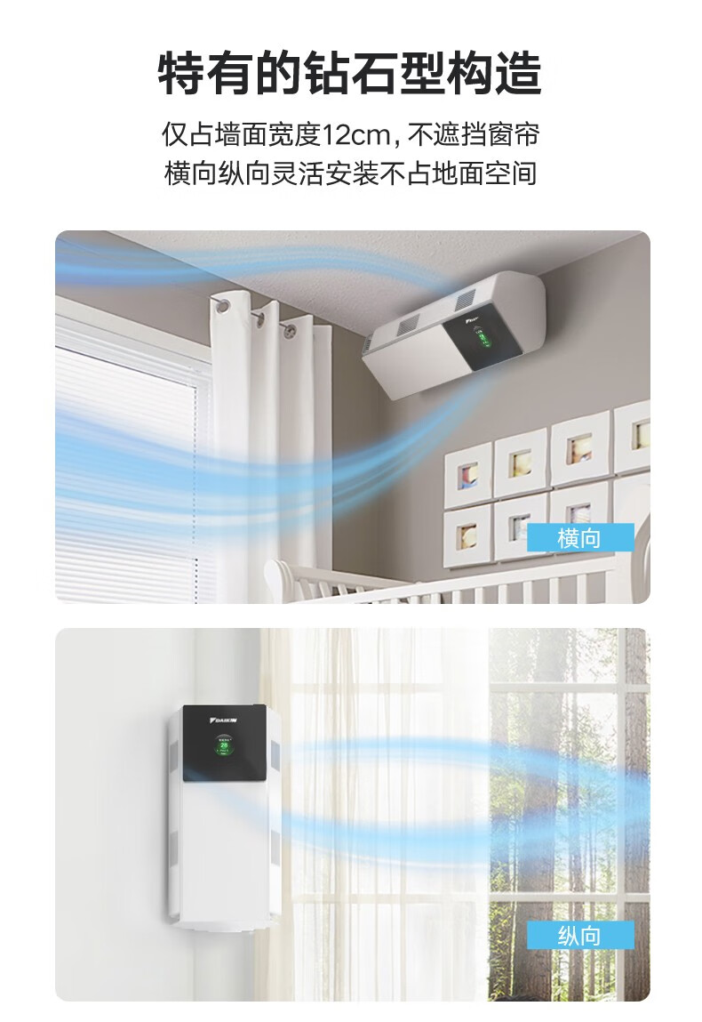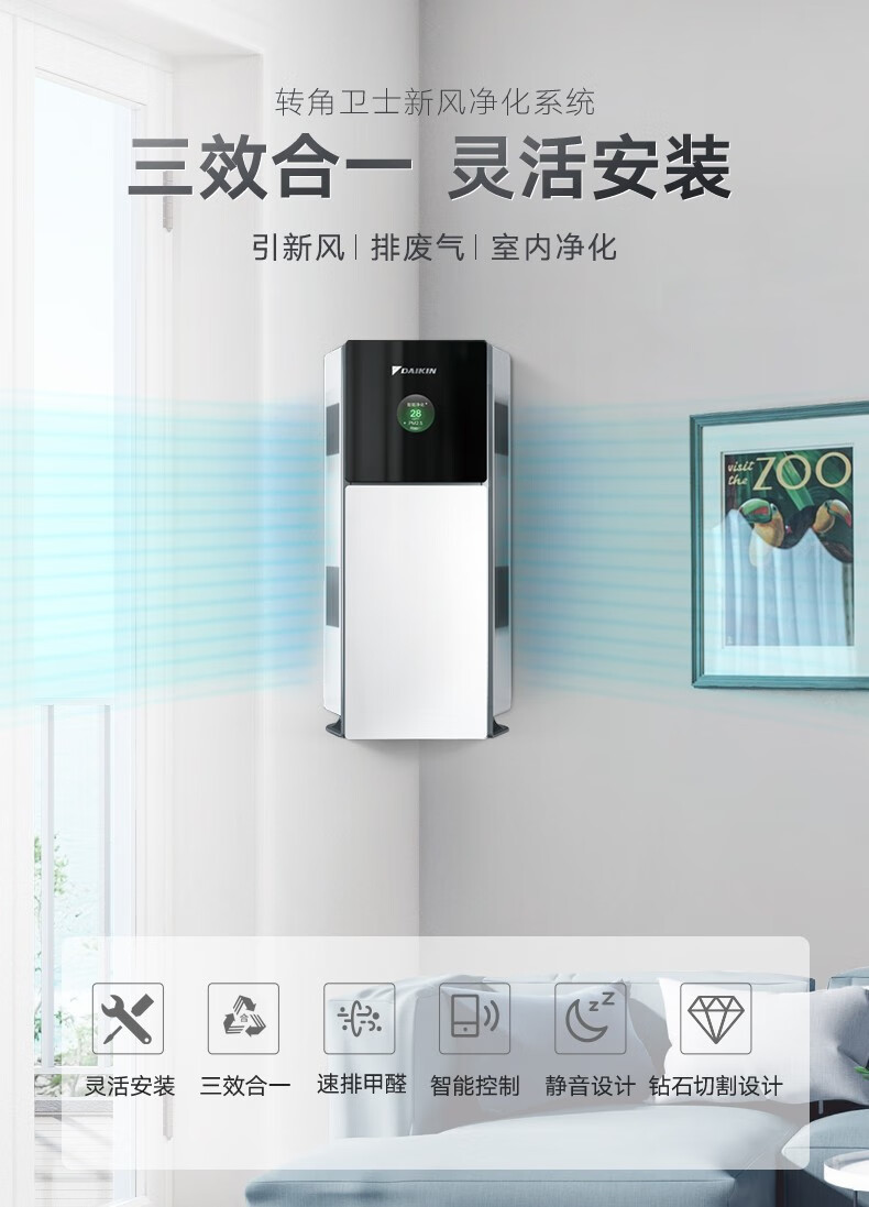 大金(DAIKIN) 转角卫士 后装型新风净化系统 引新风排废气室内净化 壁挂新风机 排甲醛 壁挂式 20-39㎡