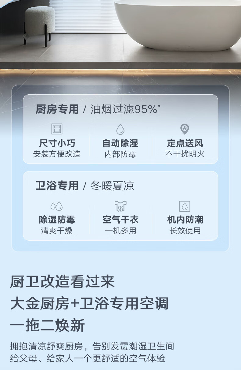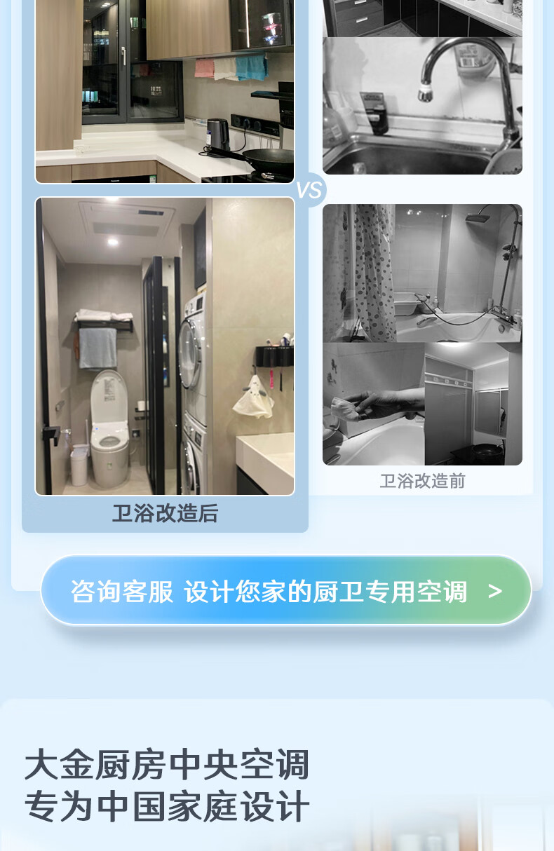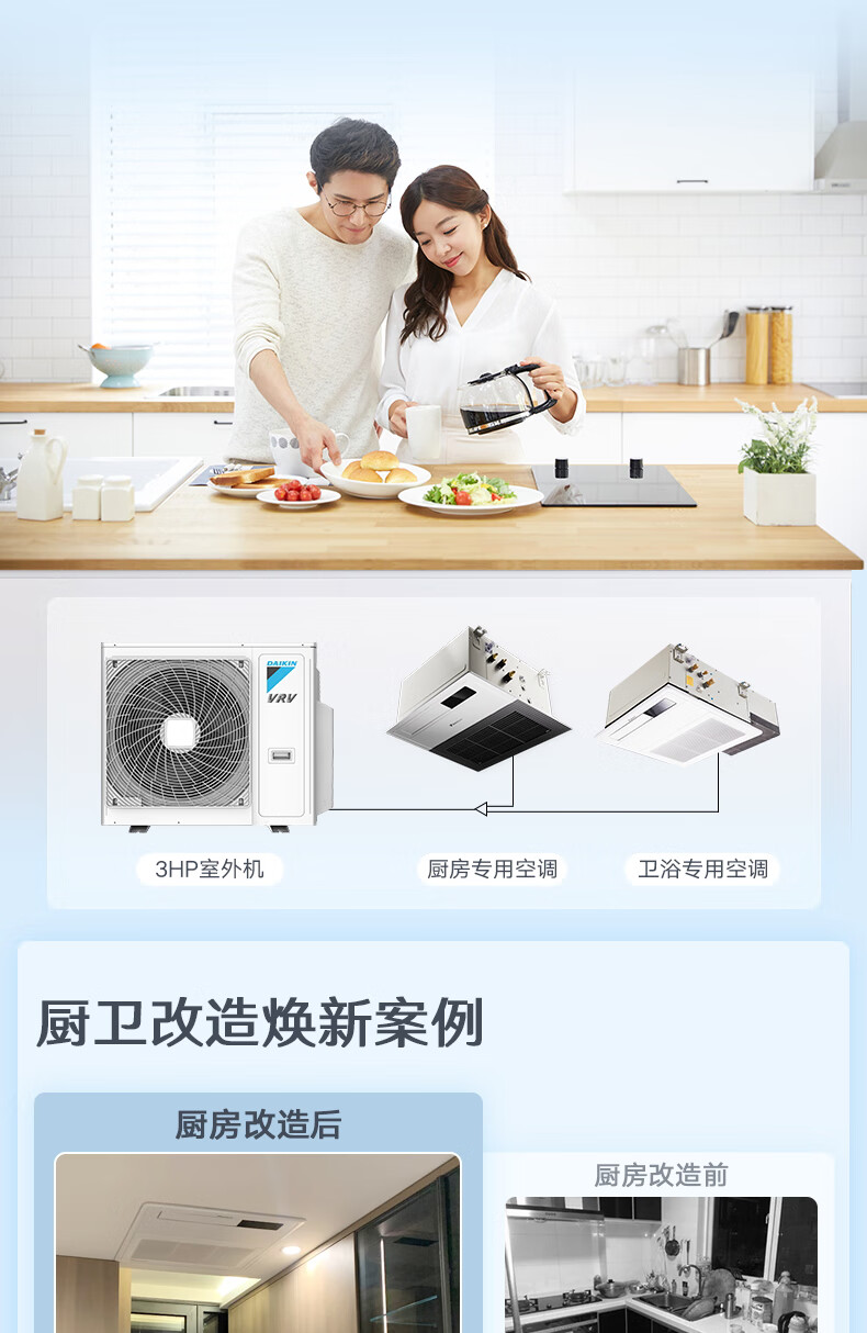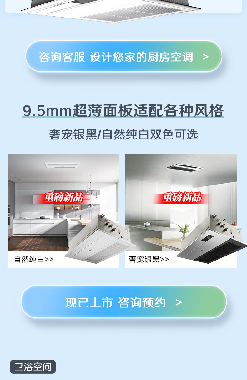 大金(DAIKIN)【0元预约】厨房卫浴专用空调 翻新局部改造一拖二多联机嵌入式中央空调1V1定制大额订金详询客服