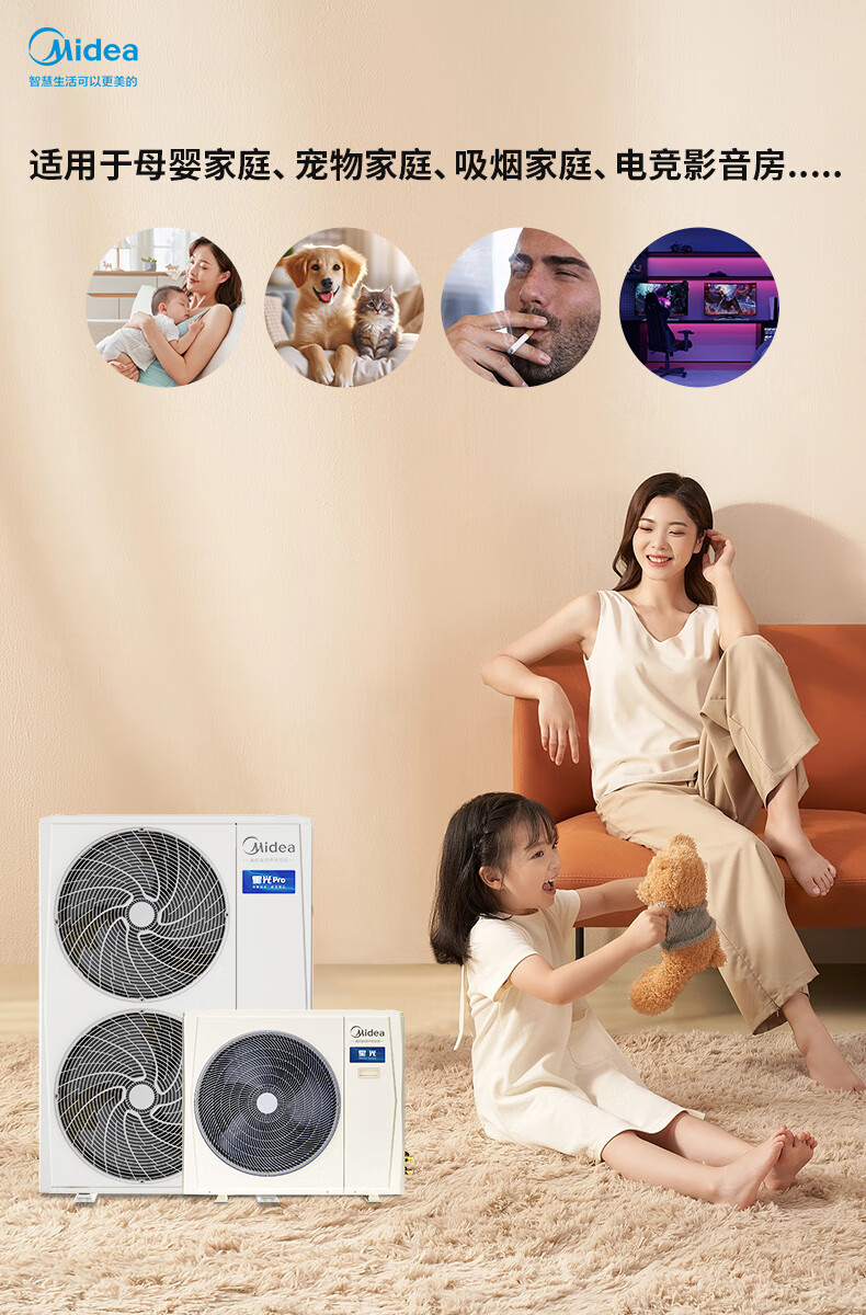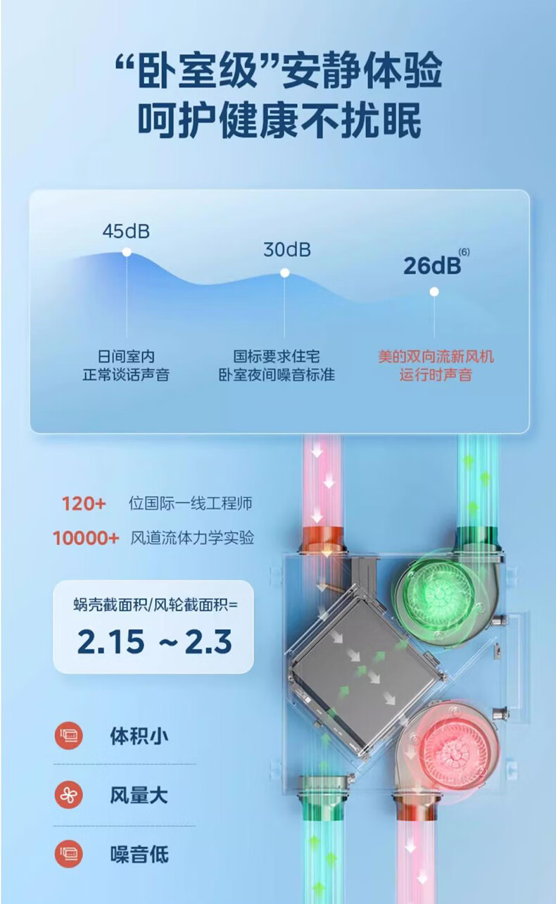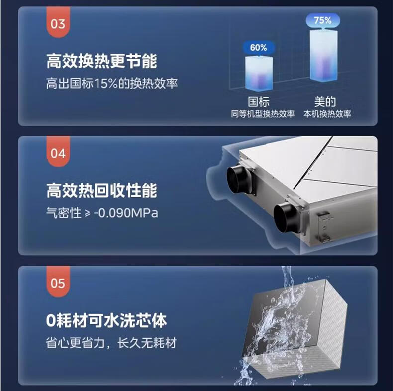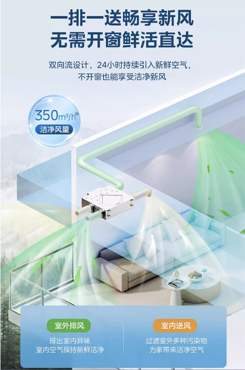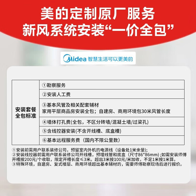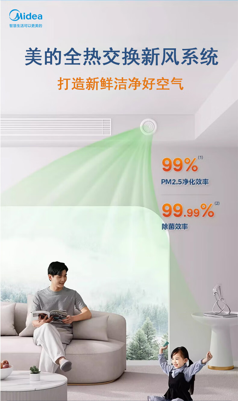 美的(Midea)新风系统家用全屋双向流吊顶换气机中央通风全热交换去PM2.5雾霾降甲醛宠物店孕妇房换气政府贴补