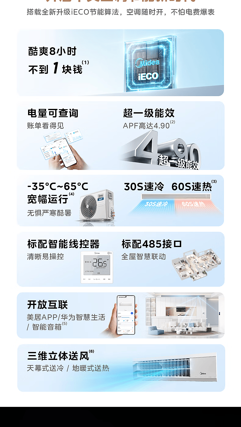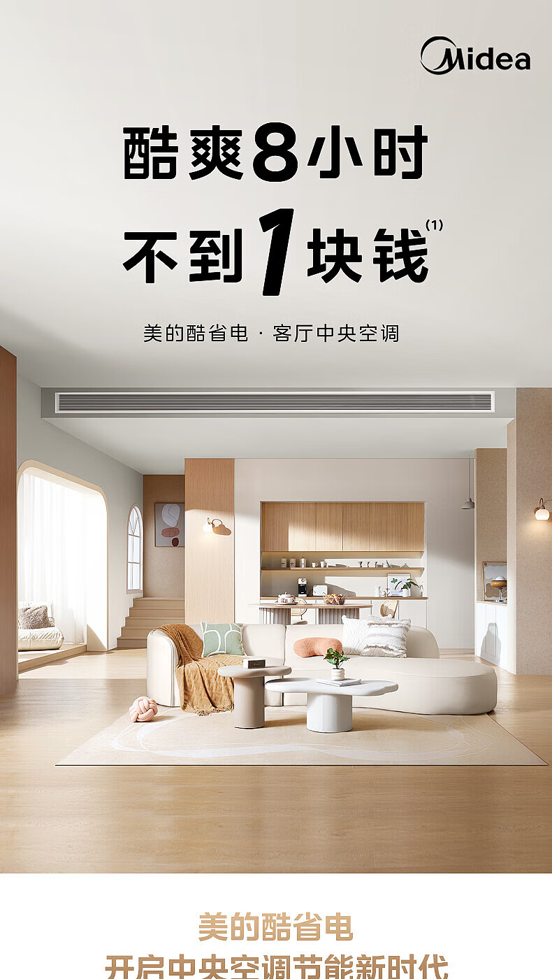 美的(Midea)酷省电中央空调风管机一拖一3匹一级能效 客厅卧室 全屋智联 一价全包 酷省电