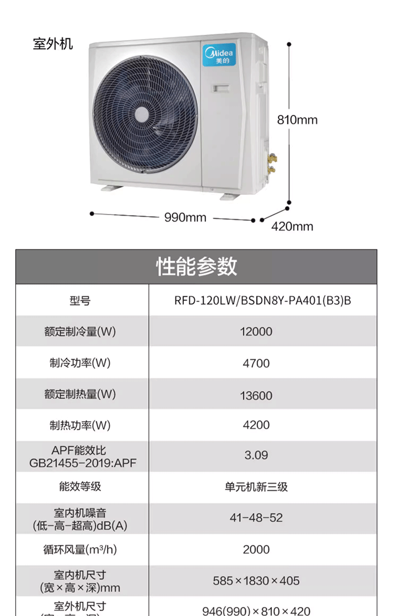 5匹 三级能效 冷暖柜机 适用50-80㎡
