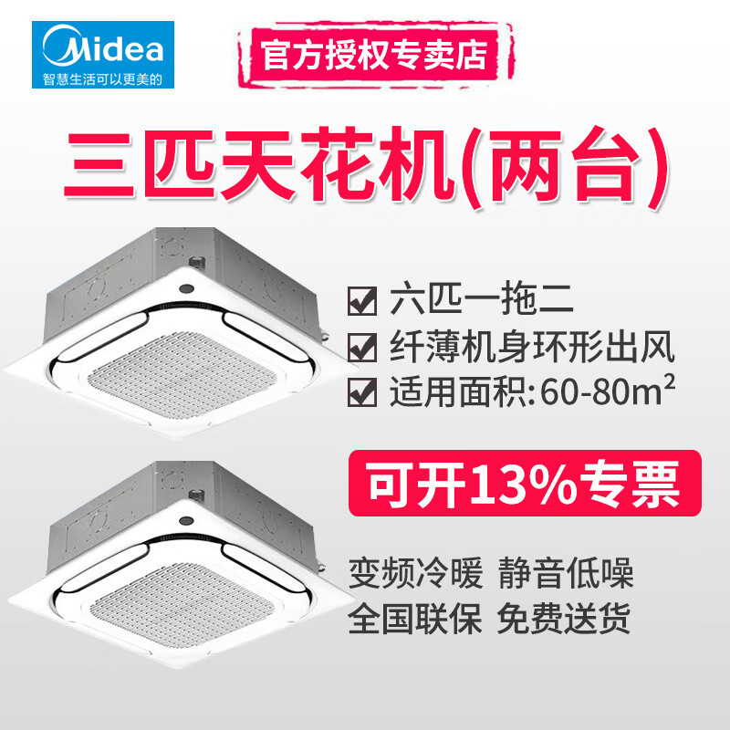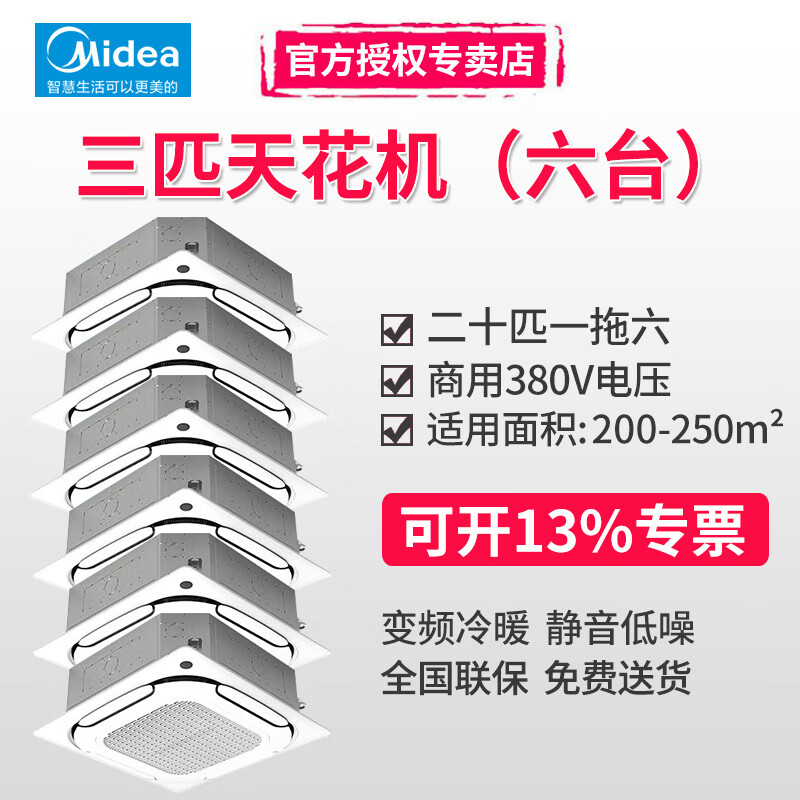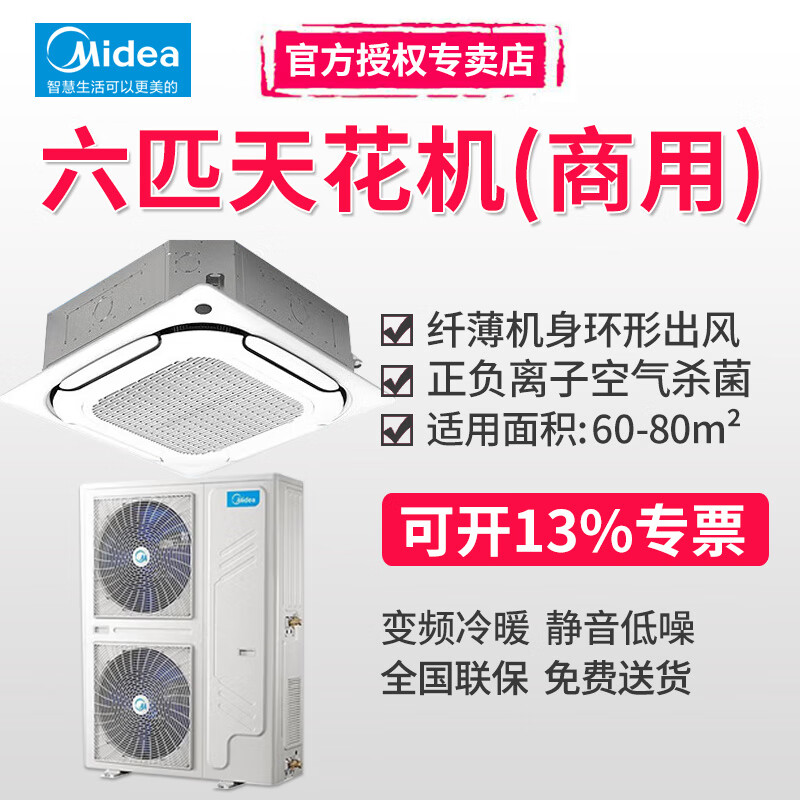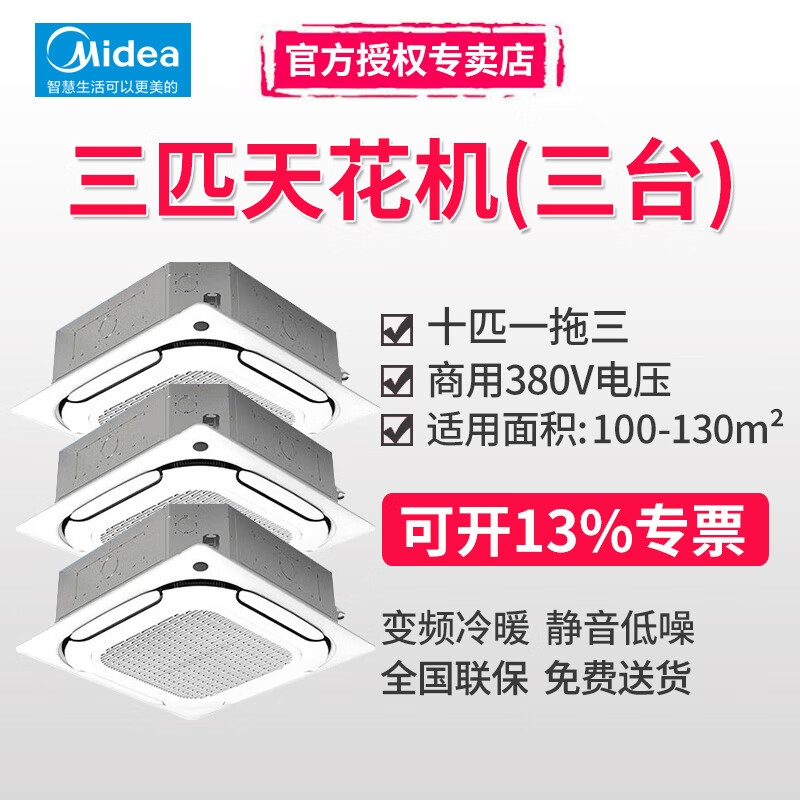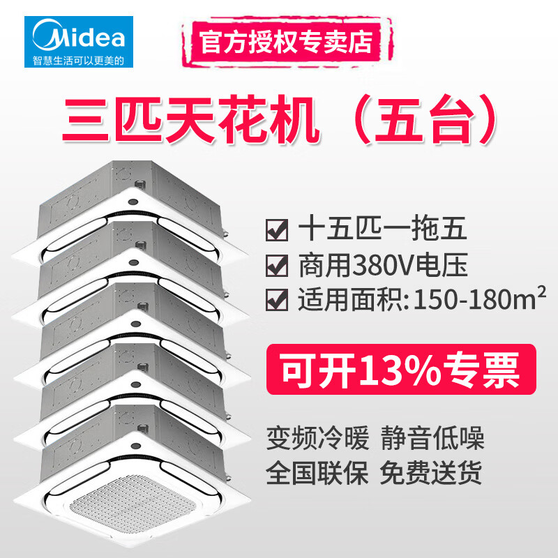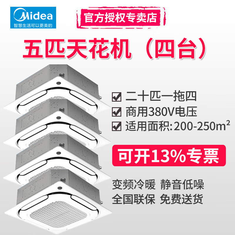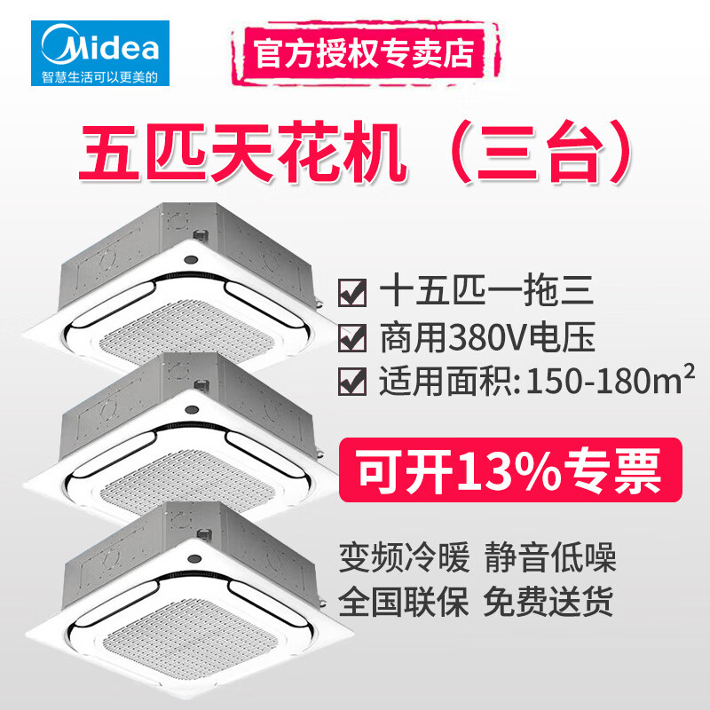 美的(Midea)天花机三匹五匹六匹十匹一拖多变频冷暖吸顶空调天井机380V三相电嵌入式四面出风商用中央空调