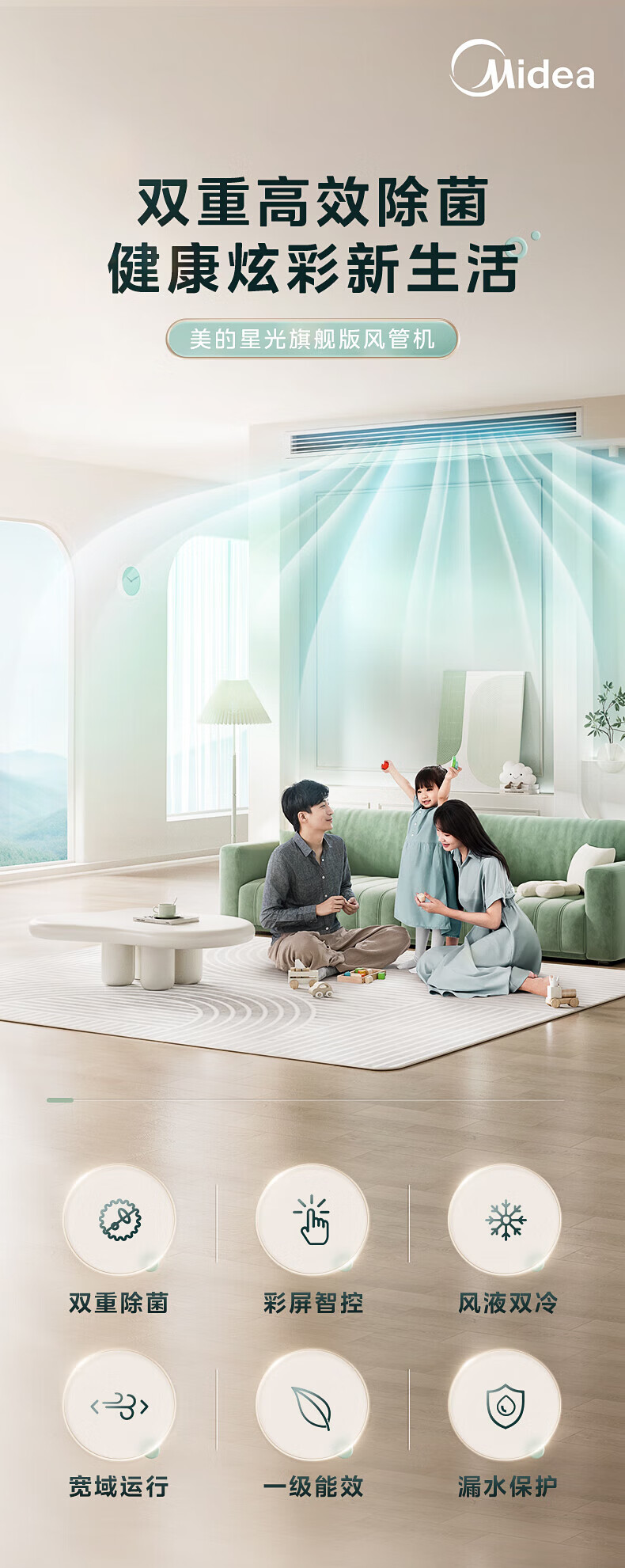 美的(Midea)家用风管机星光旗舰版3匹一拖一变频一级能效家用嵌入式客厅空调冷暖全屋智联0元安装
